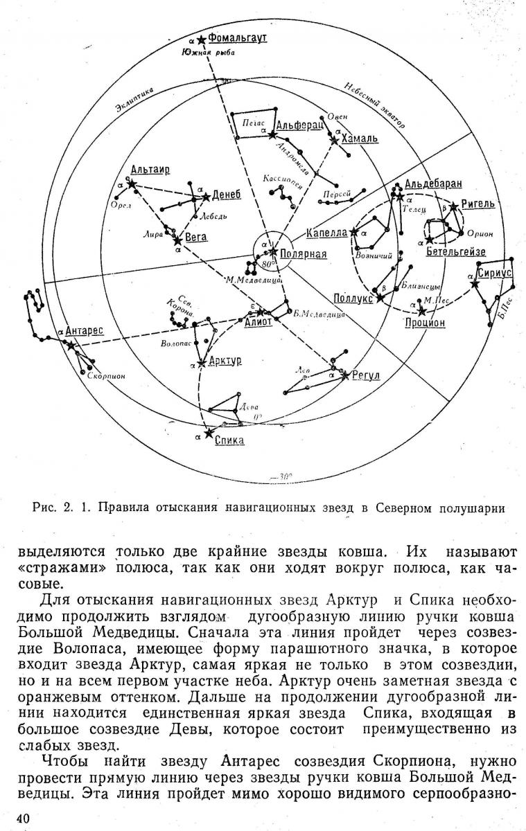 Я отсканировал несколько страниц из этого учебника, которые, я надеюсь, представляют интерес для этой темы. Отдельным файлом «Север», в более высоком разрешении, отсканировал картинку «Правила отыскания навигационных звезд в Северном полушарии».