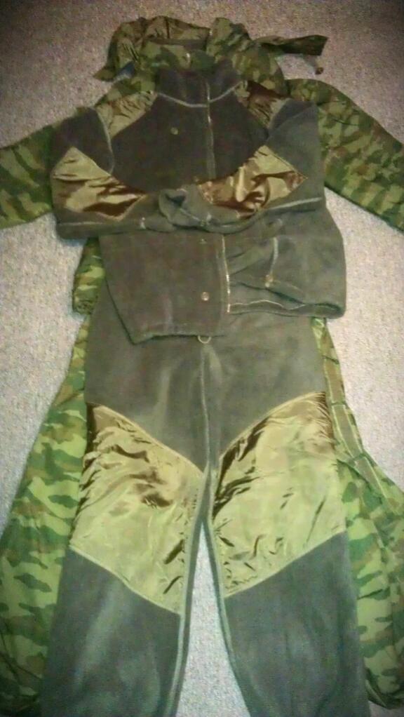 Костюм зимний с двойным утеплителем из экипировки горного стрелка. Производство «Униформ-Н». Куртка и брюки костюма изготовлены из полиэфирной ткани камуфлированной расцветки с водоотталкивающей отделкой, с прокладкой из дублированного мембранного материала для защиты от ветра и влаги. Швы для герметичности проклеены лентой из ламетана.з Первый съёмный утеплитель куртки изготавливают из подкладки, выстеганной с синтетическим материалом «Thinsulate» в два слоя. Второй съёмный утеплитель из «Флиса» может использоваться как отдельный костюм.. Брюки и подстёжка брюк имеют молнии на всю длину по боковым швам. Костюм рассчитан на экстремальные условия эксплуатации.Костюм очень качественный.Есть разные размеры.