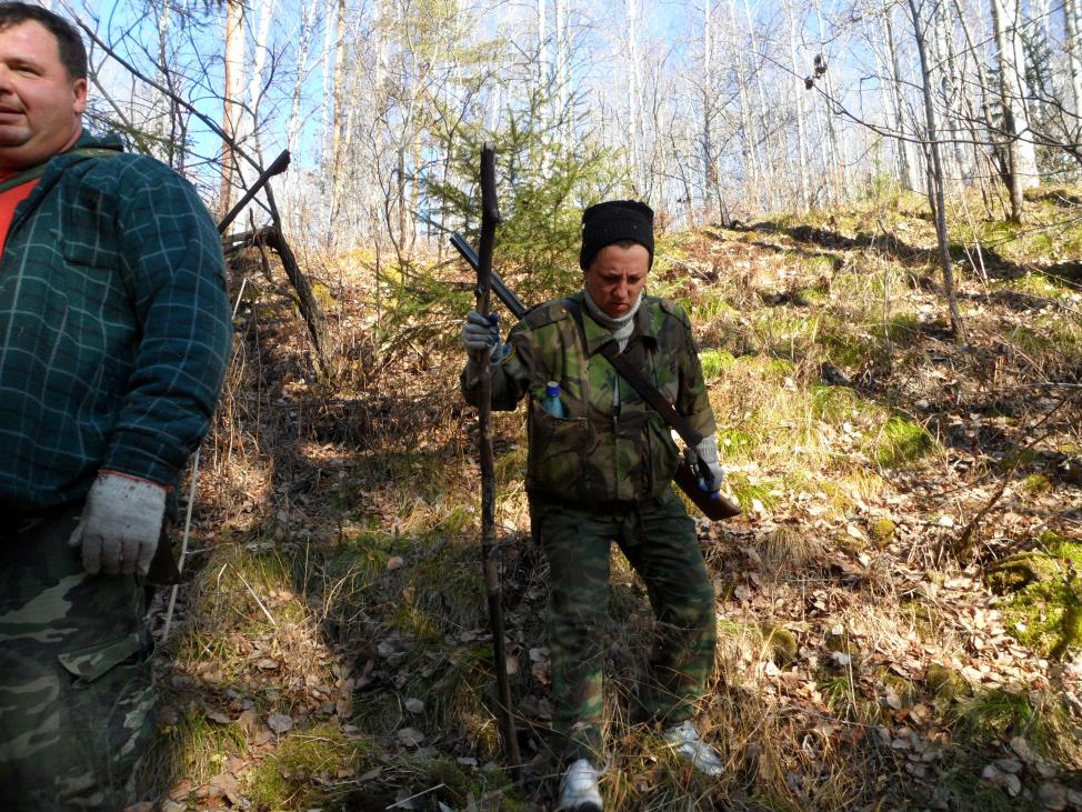 Мы упорно с братом продвигались по кровавой тропе, по количеству крови было видно, что животное ранено серьезно и вроде как далеко при такой потере крови не должно уйти, крови было очень много, были даже лужицы с большими свертками. Таким образом, мы прошли километра 1,5… вот очевидное место последней лежки оленя, но дальше………. ВСЁ!... след крови потерялся. Минут через 5, ползанья кругом от лежки в 2,5 метрах от неё обнаружили несколько капель крови на траве. И только тогда до нас дошло,что мы спугнули раненое животное, которое из последних сил рвануло спасаться от горе-охотников. Товарищей мы так и не встретили, а время двигалось к вечеру. Решили, что нужно идти на катер за подмогой на добор подранка.