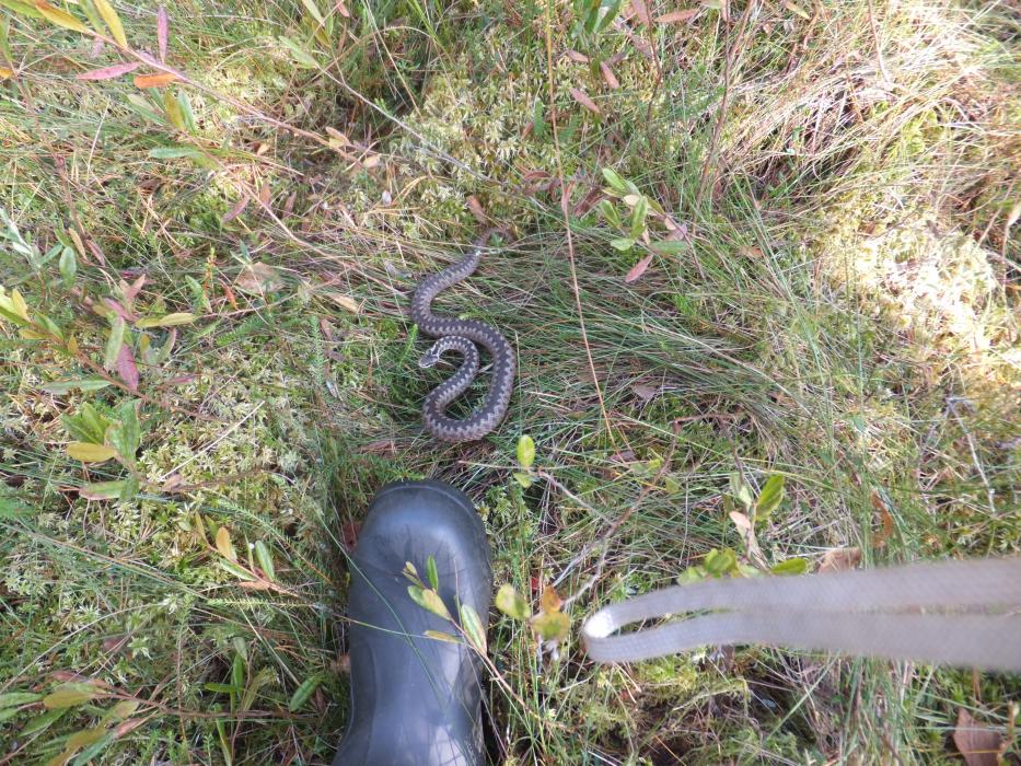 А однажды нашёл гадюку на болоте поросшем камышом. Снимать там было невозможно. Пришлось поймать и вынести на открытое пространство через триста метров и там фотографировать. Через две недели я проходил по своему следу. На той же самой кочке лежала та самая змея. Узнал её по царапине на нижней челюсти и радикально оранжевому кончику хвоста. Гадюка - рептилия территориальная. Факт феноменальной способности змей находить дорогу в свои места описан ещё Бремом.