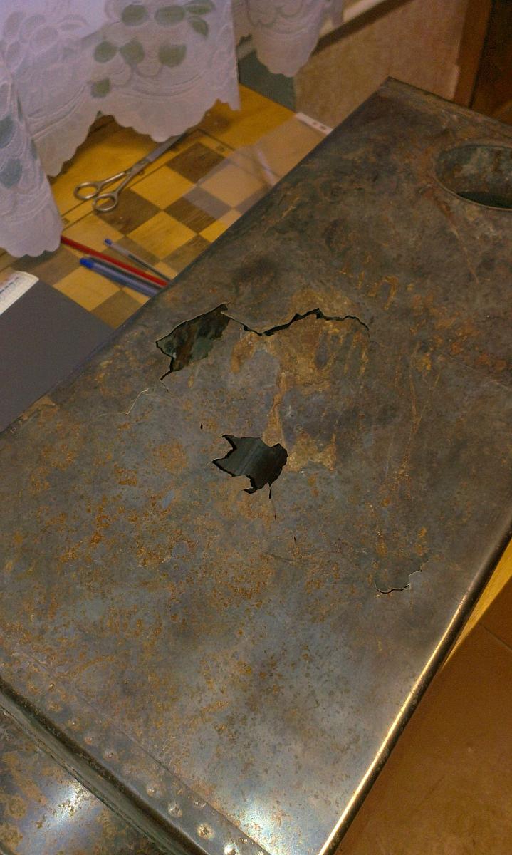 Судите сами - долгое время дно нормально выдерживало длительные протопки и беды не знало. Но, как только пне пришлось поставить печку не на камни, а на песок + засыпать слой песка толщиной в 5 см внутрь топки - так сразу дно стало коробиться и лопаться. ОНО НЕ ПРОГОРЕЛО! Оно покоробилось и треснуло.