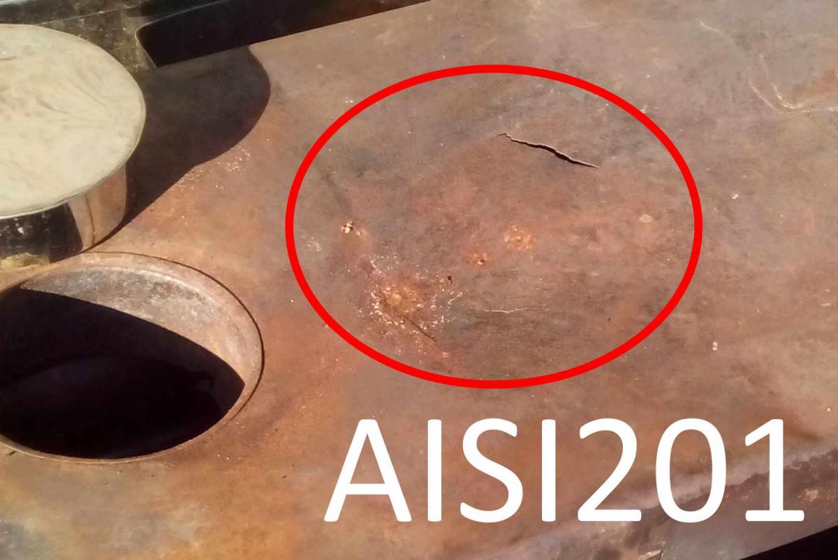 Мы купили нержавейку 201 марки которая прекрасно держала сварочные точки и использовалось в агрессивной химии. Мы тестировали печку 10 дней и ночей, жгли на разных режимах и поливали солью. Все было нормально и мы выпустили печки из марки 201. Через год стали приходить рекламации что печи трескаются. В ходе подробных тестов выяснилось что после отжига эта нержавейка становилась очень жесткой и хрупкой - каленой, но выявить это сразу мы не могли, т.к. метал начинал крошиться не сразу а по прошествии некоторого времени