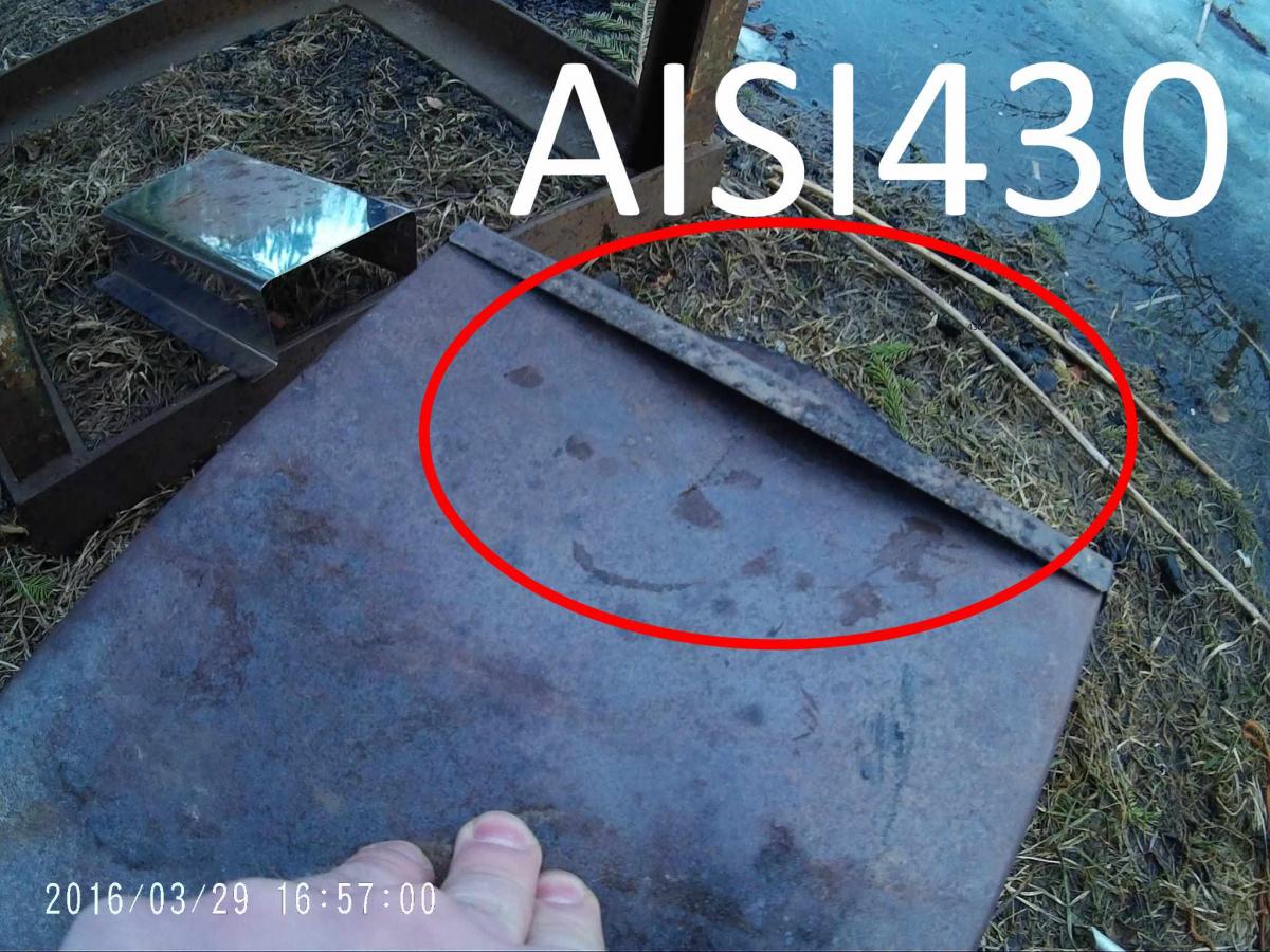 Уже больше 2х лет экспериментальные печки из трех марок нержавейки лежат под открытым небом под дождем и снегом и проходят испытания временем. Периодически мы их используем для экспериментов и в походах, даем печи друзьям для походов и бань.