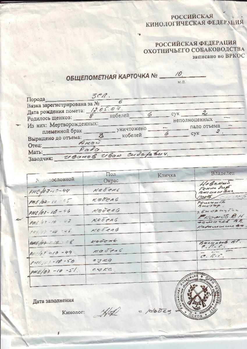 4. Неаккуратностью заполнения щенячек страдает не только Псков, при получения свидетельства на собаку недостающие ВПКОС, № сви-в, ошибки в фамилиях заводчиков благополучно исправляются.