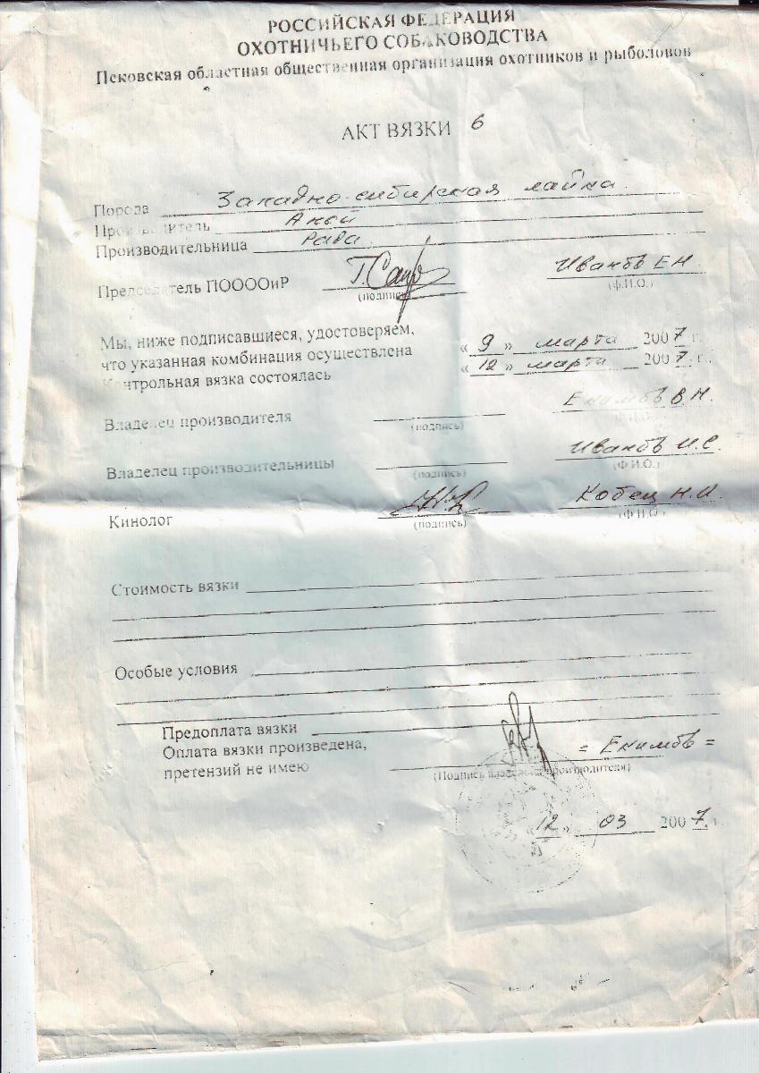 Что акт вязки, что общепомётная карта оформлены не правильно, скинь, пожалуйста,лицевую сторону щенячки.