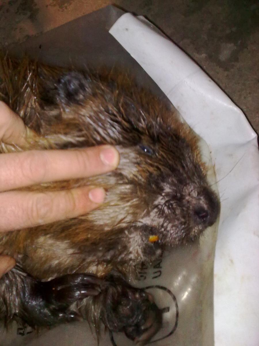Подогнав лодку, я посветил фонарём на то место куда стрелял. Крупный бобер был на том же месте где я в него попал. Послаживав в бардачек лодки уток и выташив из воды бобра я поспешил домой потому, что еще предстояло не совсем простое снятие шкуры с этого зверя.