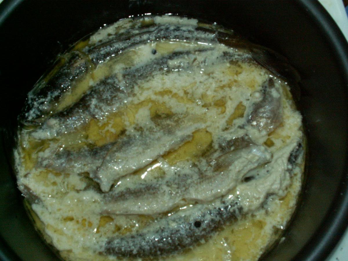 Но осталось пяток рыбёх ,коих не осилил...обратно в морозилку не сунеш..,второй раз морозить вата получиться,решил потушить в сметане.