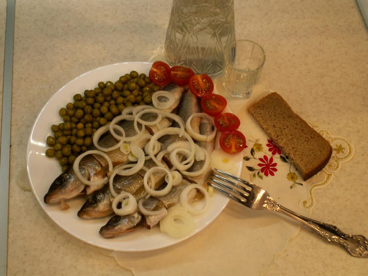Как говориться- лучше нет закуски квашеной капустки...но под неё тогда и картошечка отварная треба...блин,а пока она вариться так и желанние махануть пропасть могет...как быть тогда и желанние укрепить да и с временем сильно не затягивать.....ПРАВИЛЬНО...порезать солёного харюзка...чем не закусь.