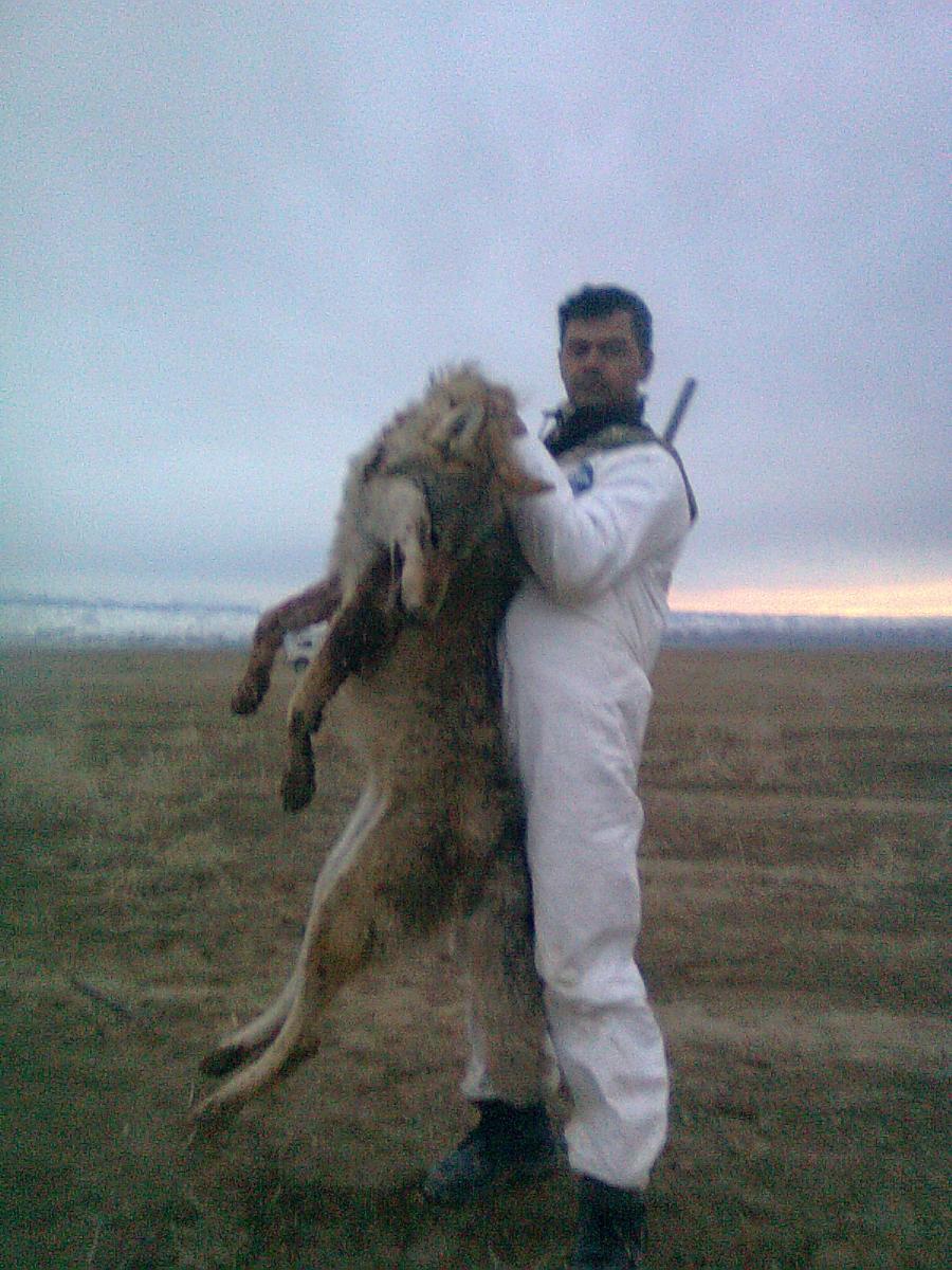 Засада держалась только на мне! Я (немного стыдно )), но совсем немного, если честно) не давал напарникам уйти. Часов через 5 и мне стало невмоготу, позвонили отцу местного напарника, он приехал с соседом, габрал и нашу Ниву (она была оставлена далеко в стороне), и на 2ух машинах они пошли "тревожить" волков на возможных их лёжках, результат не замедлил!!!