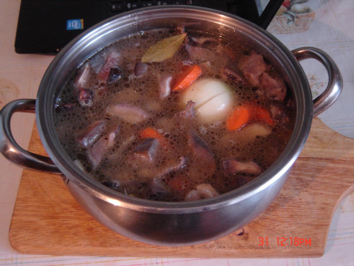 2. Прежде чем варить окончательно, я кладу в воду после 10мин. кипения я сливаю воду и варю окончательно уже в новой воде и ни какого запаха.