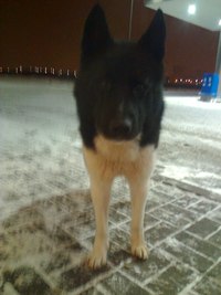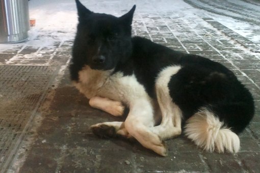 Сегодня снова заезжал на заправку.Собака все там же.Окраска Черная с белой грудью.Легко идет на контакт, подходит почти к каждой машине.