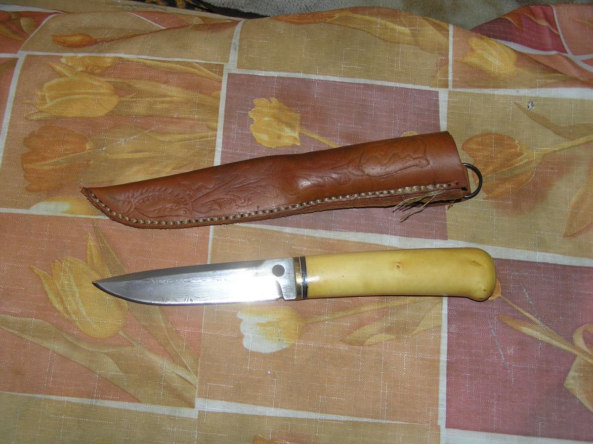 Хороший знакомы попросил одеть его ножичек (дамаск, самшит).