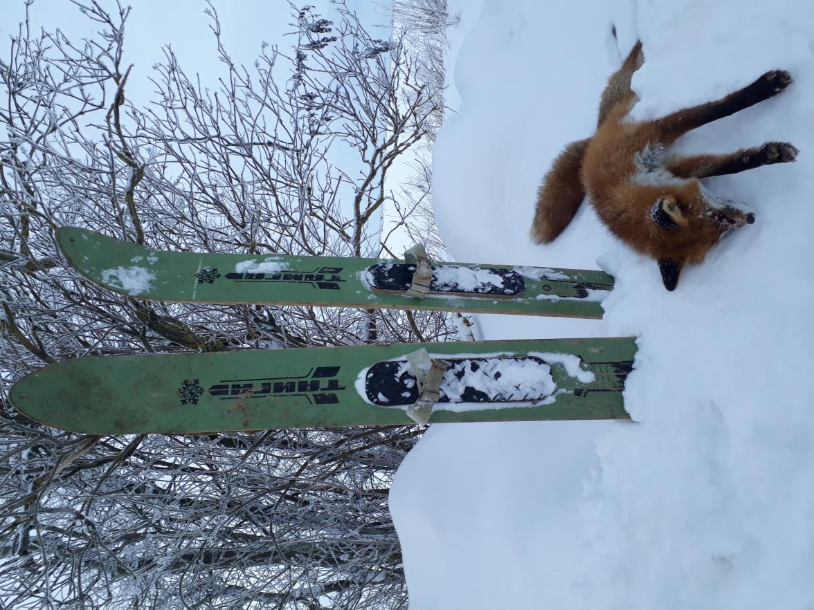 Лиса подходила не спеша но уверенно. С какой же стороны начнет обходить мой куст? думал я. Если спереди от меня, то идеально. Если сзади за кустом, то считай провал. Куст был настолько густой, что почти не просматривался. Лиса подошла уже метров на 100 стала обходить меня СЗАДИ! и скрылась из обзора за ветками. Ее движение еле угадывалось по мельканиям через очень маленькие прогальчики в кусте. До цели было метров 50 но стрелять возможности не было. Я не переставляя ног поворачивался за лисой корпусом. Вложится и вести цель не мог из-за близких сучьев, держал ружье опущенным вниз. Лиса уже почти обошла куст и приближалась к моей лыжне. На счастье в ветках была небольшая прореха и рыжая притормозила как раз в ней. Я не раздумывая, вложился и выстрелил. Лиса рухнула на месте. Про себя прокричав ура!!!, повернулся в сторону другой лисы. Она неспеша убегала прочь.