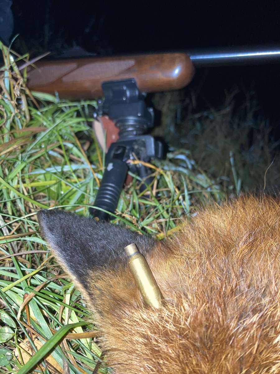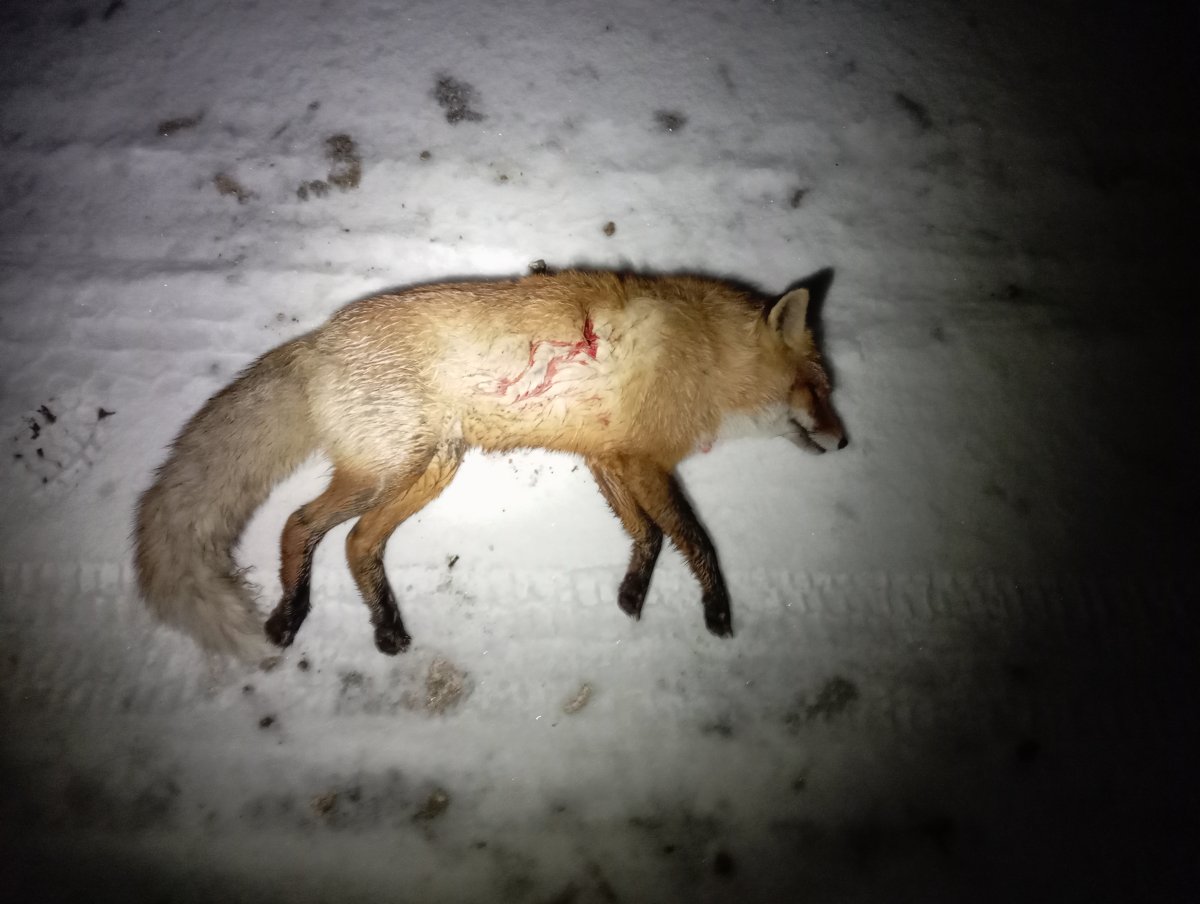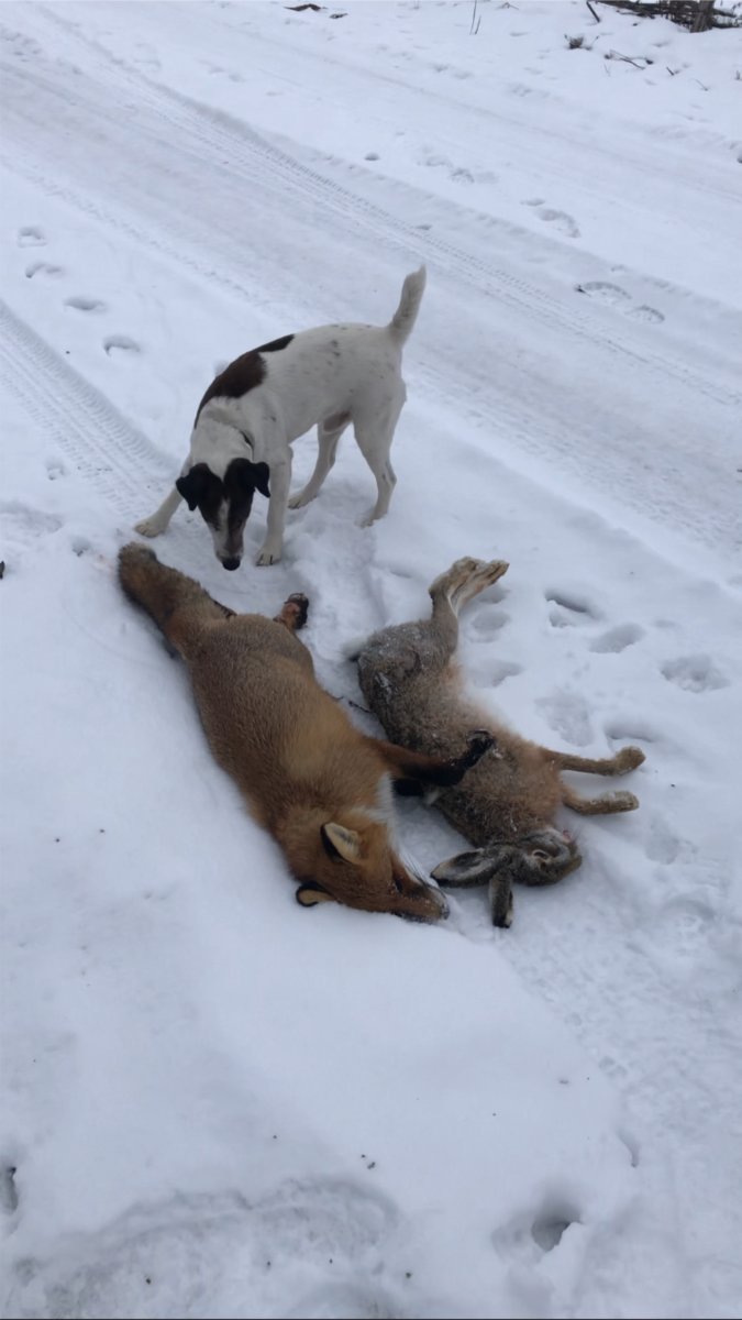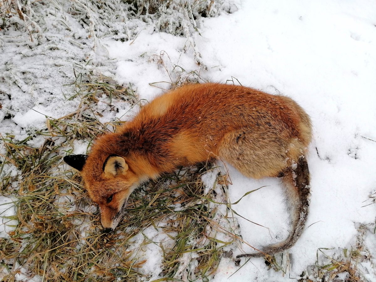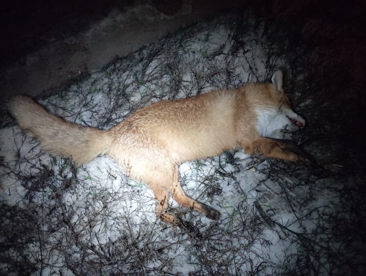 Сегодня заохотил молодого лисовина. Охота экспресс вариант.. Часов 15.00 приехал в поля, прямо на машине на поле(снега нету, земля мерзлая) зашел за холм метров триста и замечаю на соседнем поле метрах в 400 от себя лиса мышкует. Сначала показалась что заметила меня стала удаляется и уходить в низину к канаве. Дождался когда зашла за кусты и махом на перерез, пока скрадывал понял что меня не заметила продолжает мышковать, подошел метров на 150 поманил пищалкой, как только вышла из за кустов стрельнул. Только после выстрела увидел что лишайная (когда крутиться стала) вторым выстрелом добрал.