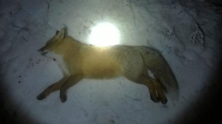 Отчитываюсь сразу за три охоты. Позавчера поехал в 22-00. Погода была неайс. Градусов 6 мороза, плотная облачность, юго-юго-западный порывистый ветрюган, метров 10 в секунду и туман, временами приносимый ветром. Безрезультатно объехал четыре перспективных места. Видимость паршивая из-за облаков, да ещё снег за оттепель сильно подтаял, обнажив травищу и клочки земли. К часу ночи добрался до границы с соседним районом, куда давно стремился, т.к. там с обеих сторон межрайонной автотрассы огромные по нашим степным масштабам искусственные лесонасаждения (гектар по 80-100 каждый). Между лесом и автотрассой, наши крайние поля озимки, полностью покрытые снегом. Ветер как раз поперёк трассы на левый лесной массив. Я решил испробовать способ Димы, т.е. использовать свой автомобиль, стоящий на обочине автотрассы, в качестве укрытия. Минут через пятнадцать на заячьи вопли из леса появилась лиса и стала почему то обходить меня справа, метрах в двух ста. В это время оттуда же показались фары едущей по трассе машины. Я убрал карабин в салон, что б не пугать людей и подождал, пока проехала сильно уставшая (судя по издаваемым звукам) вазовская "четвёрка". Чего людям не спалось во втором часу ночи?:ag: Пока моё внимание отвлекало это авто, лиса по полю подошла и села метрах в 50-ти напротив меня. Плавно достаю карабин, ловлю горло лисы в перекрестие и жму спуск. Слышу громкий "ляпыч", и лиса ещё падая, умерла. Это оказалась старая, большая, пушистая самка, при виде которой у скупщика вчера загорелись глаза.:agg: Кладу её в тазик в багажнике и еду спать. Вчера дожидаюсь на работе, пока как следует взойдёт луна и около 20-00 выдвигаюсь к ранее намеченному, вспаханному полю подсолнуха, буквально укатанного лисами. Опять сильная облачность. Сажусь в старой лесополосе вдоль дороги на отдалённый хутор. Градуса 2 мороза. Ветер юго-западный, метра 4-5 в секунду, дует сзади меня градусов 30 влево. Примерно через пол часа слева появляется лиса и очень осторожно, с частыми остановками, движется вправо, заходя на ветер. Я не стал дожидаться, пока она меня унюхает, и прикинув, что до цели метров 150, при очередной остановке стреляю. Лиса падает, потом начинает кувыркаться через голову, опять падает, затихает, а потом вскакивает и мчится под ветер к дальней, перпендикулярной моей лесополосе. Етить колотить!:cc: Снимаю тёплую куртку и иду смотреть результат стрельбы. От места стрела по дальномеру оказалось до моего стульчика 178 метров. Значит я обнизил, а из-за неправильной поправки на ветер, ещё и обзадил. Там, где падала лиса, сгустки тёмной венозной крови и куски внутренностей. По обеим сторонам следа кровяные дорожки. Иду по следу и когда дохожу до дальней лесополосы, куда ведут следы, кровь на следу почти прекращается и еле видна, хота на местах остановки лисы огромные лужи крови. След на насте местами теряется, но там где след отчётливый, хорошо видно, что лису сильно штормит. Решаю не лезть ночью в старую лесополосу, захламлённую буреломом и вернуться сюда на следующий день. Сегодня оказалось, что мне оставалось пройти до дошедшей лисы каких то метров 200, а её вперёд меня нашли вороны. Это оказался огромнейший лисовин с порванным брюхом. Как этот терминатор прошёл больше километра с таким ранением, для меня загадка. Вчера же в растрёпанных чувствах переехал опять на границу с соседним районом и 