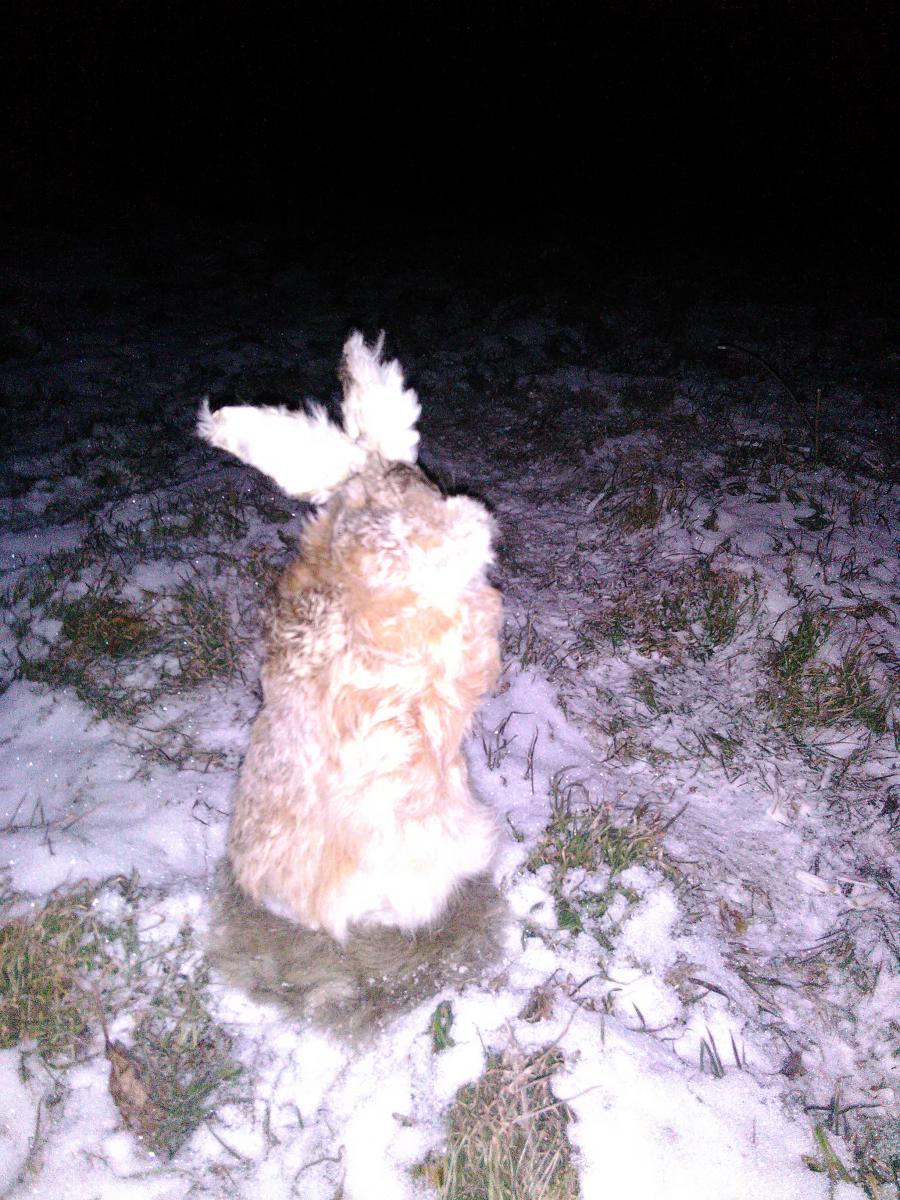 Смотрю - черная точка нарисовалась где то на 250 метров. Думал - глюк. Однако она увеличивалась в размерах и на 150-200метров стала рыскать зигзагом. Уверенно продвигалась прямо на меня. Медленно и плавно перемещаю карабин в её сторону и одновременно вкладываю в плечо. Всё. Кума на перекрестии прицела при х5. Бля, а сколько до неё метров? Не хотелось бы с рук, да еще сидя на жопе промазать. Дистанция сокращается быстро. Уже в темноте при свете звезд на снегу различаю голову и корпус. Хвоста не видно. Бежит прямо мне в лицо. Х.З. может опять не лиса? Подпускаю ближе. Уже хорош. Видно что рысью чешет лисичка.