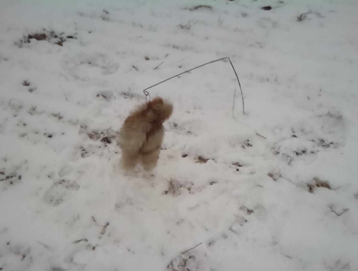 Ветер дунет - хвосты телепаются и подскакивают от земли. Издали впечатление зайца, попавшего в петлю. Я в этот момент дую в манок раненного зайца.