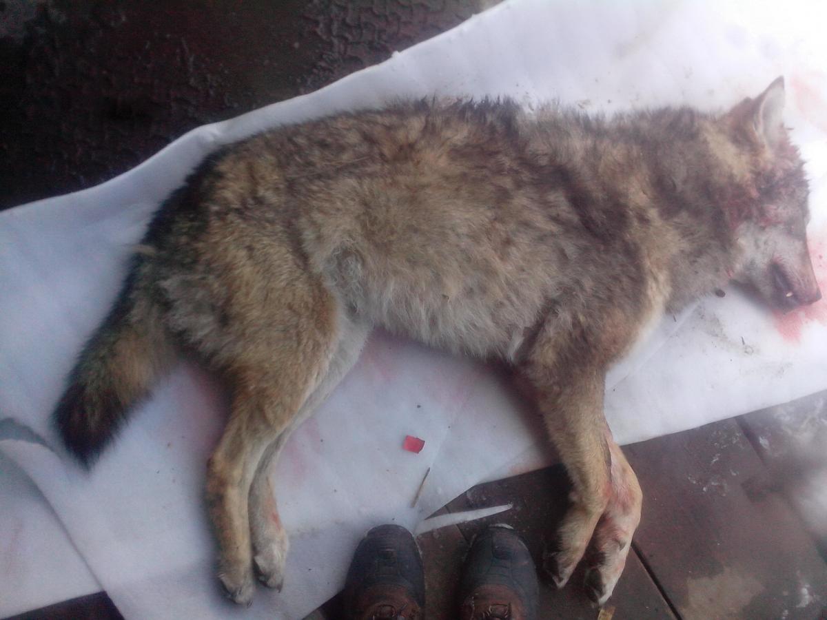 Звонить егерю не стал. Хрен его знает, может я что не правильно сделал? В любом случае давать волку валить, когда он сам пришел и когда другие охотники делают неимоверные затраты сил и денег на ликвидацию хотя бы одной особи наверно тоже не правильно. Особенно с учетом того, что в округе найти зайца, да и лису в том числе очень проблематично. Вот фото: