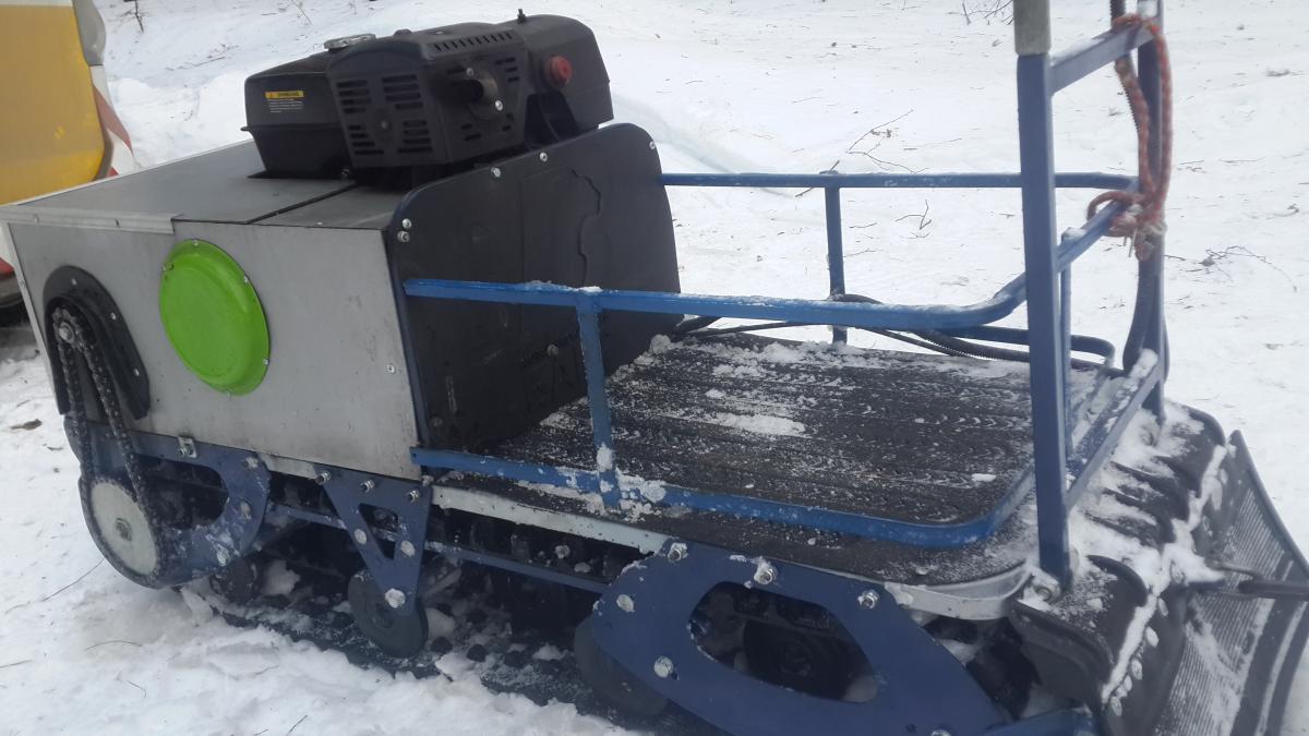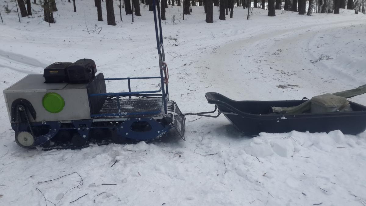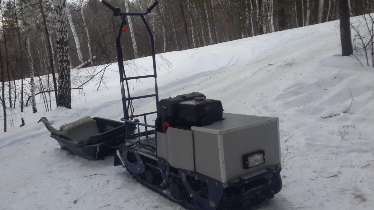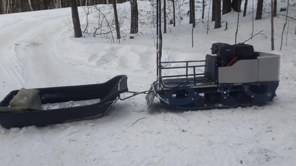 Переставил двиг вперед, соответственно и вариатор. Делал так: разобрал, раму развернул, вырезал профили к которым крепилась плита двс и вариатор и приварил их зеркально, таким образом всё встало в штатные места, плита двс просто переворачивается и все, вварил кусок профиля чтоб не проваливался багажный отсек. Болты которые крепят щеки выкинул, купил черные каленые в автомагазине, вставил изнутри и прихватил сваркой. Теперь разбирать и собирать ходовку очень легко! Сзади к раме прикрутил к штатным отверстиям (по четыре дырочки на отгибах в щеках раньше они были спереди) кронштейн сваренный из трубки д20 и уголков к нему ухо из стали 10мм с отверстием, посередине прикрутил на болт к штатному крепежу прицепного. Это теперь прицепное. Покрасил раму, сварил еще одну раму для каркаса кожуха, тоже покрасил. Перевернул лист который был дном и всё подошло как было))). Стенка между двиглом и багажником тоже подошел, акб теперь за вариатором. каркас багажного отсека тоже сварил из профиля и полосы, приварил болты и прикрутил чтоб отдельно все разбиралось. Все покрасил. Т-образные звезды снял, отпилил те зубья которые ненужны, между ними поставил сантех кольца резиновые(которые уплотняют между бачком и унитазом) по 4 шт., собрал. В заднюю и среднюю тележку вварил по одной доп пружине для жесткости и чтоб тележки не переворачивались. Поставил ручку газа от ИЖа., причем оказывается купить надо только ручку а вот то что на руле у моего следопыта с кнопками дак это и есть корпус ручки газа от ИЖа только переставить надо и в руль вварить трубку потоньше ато у меня рукоятка не надевалась. Там еще чуток надо поколдовать с тем как трос газа приделать.. Я сделал из медной трубки в которую входила рубашка троса. Кстати трос поставил от багажника нивы, вернее рубашку от него а трос по метражу купил в строй магазине. Кстати эту же медную трубку я примотал изолентой к рулю чтоб трос в ней свободно двигался при изменении угла руля. Сделал из тумблера аварийную глушилку двигла, а то родная совсем г..но Поставил новый брызговик) Сделал новый кожух из композита, поставил фару которая была. Ну и проводку всю переделал, сделал с хорошими разьемами и почеловечески. Вот как то так))) щас попробую фото прицепить