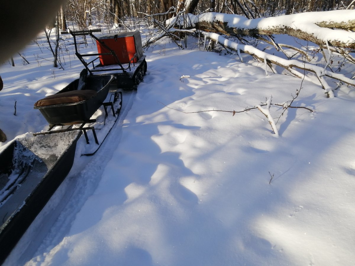 что для езды по глубокому снегу и в лесу нужен буксировщик с УЗКОЙ но ДЛИННОЙ гусеницей.