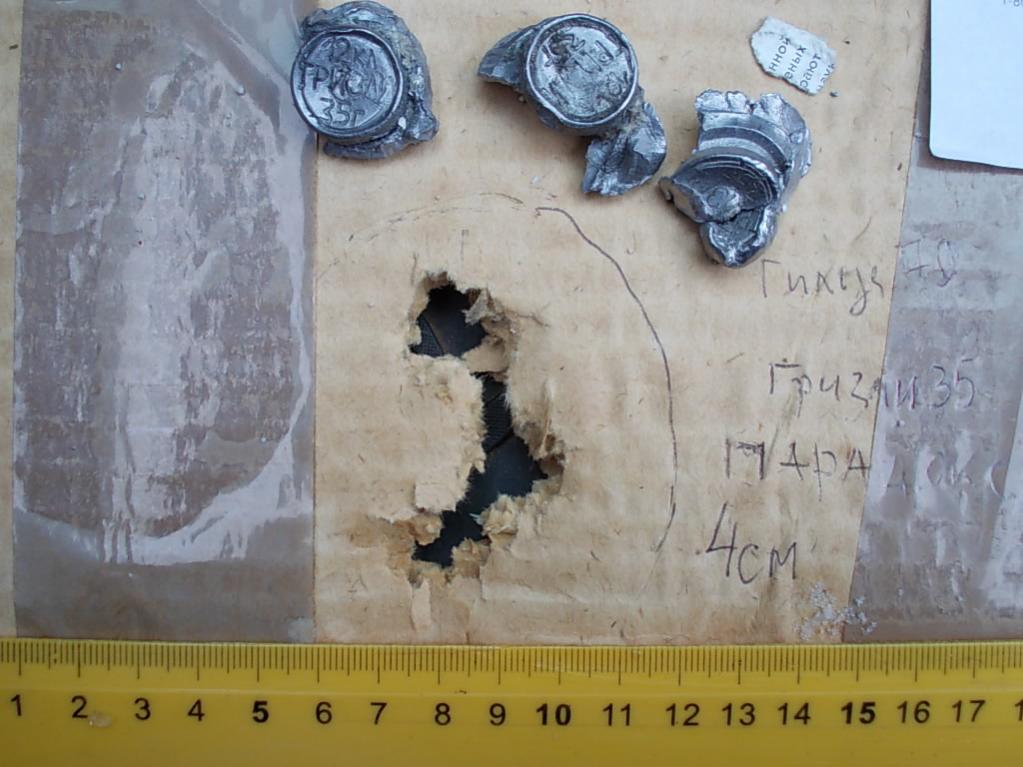 Однако низкий профиль нарезки все-таки дает о себе знать: после нескольких серий подряд кучность ухудшается, появляются отрывы. Здесь возможны два фактора - нагрев ствола и последующее расширение, из-за чего происходит "срыв" с нарезов. Также возможна освинцовка парадокса с аналогичными последствиями. Кроме всего прочего необходимо тщательно подбирать пули. Приобретенные от Шашкова В.И. Гризли-35 откалиброваны на диаметр 18,4. Канал ствола у Akkar 18,57, т.е. в стволе свободно проваливается. А в нарезах парадокса 18,35 - таким образом все на пределе. Заказал сейчас пули некалиброванные, их надо самостоятельно прокатать до 18,6, чтобы шли плотно.