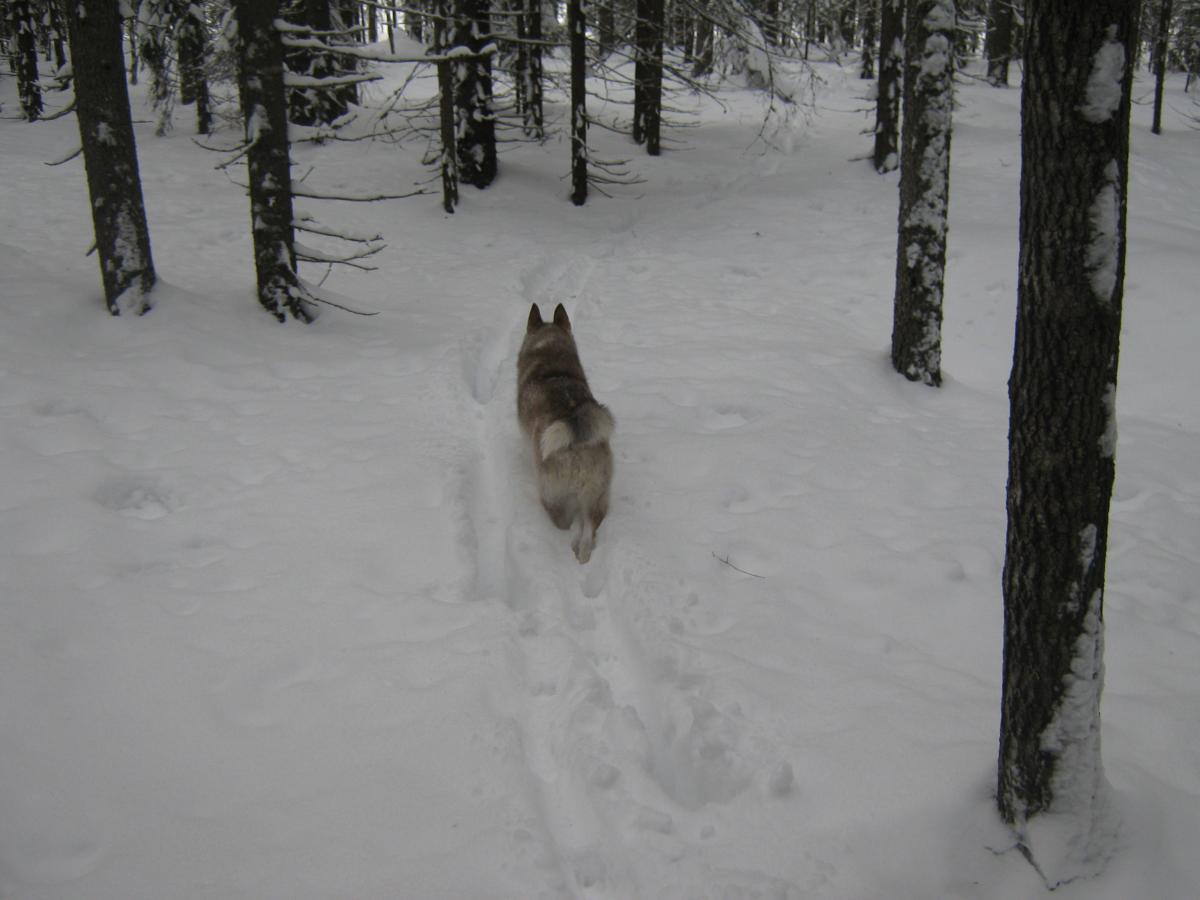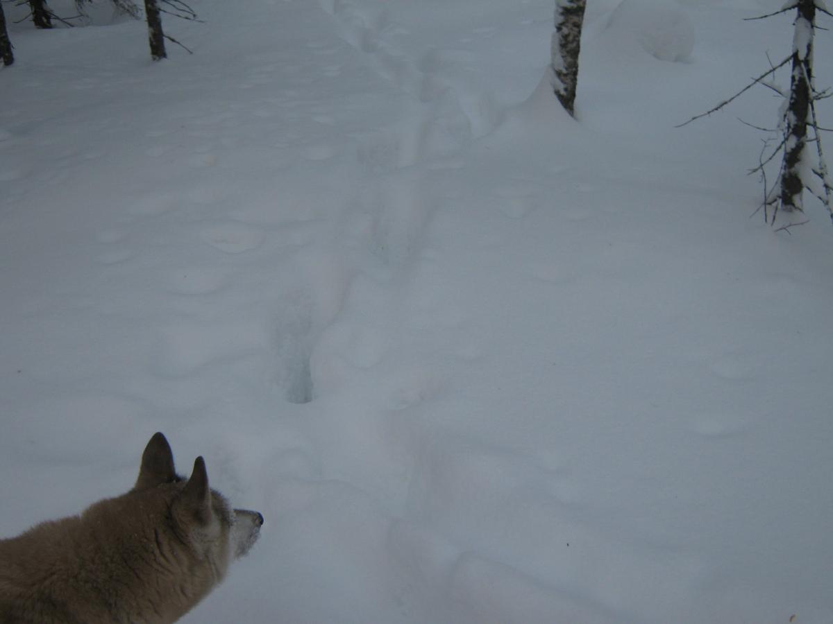 У меня пара собак.Один ещё молодой, вторая, старушка. Чересчур умная, лишний раз по снегу непобежит. На то и рассчитывал, что собаки под боком будут. А тут по открытомукак рванули. Слышу, заголосили. Я наддал и ещё наддал. Думал, успею на открытоевыскочить на выстрел. Не успел. Семья (было 3 лося) Ушла через болото. Покауспокаивал сердце, да дыхание в порядок приводил, прибежал молодой, Дымки нет,пару раз гавкнула, где то вдалеке на тойстороне болота.
