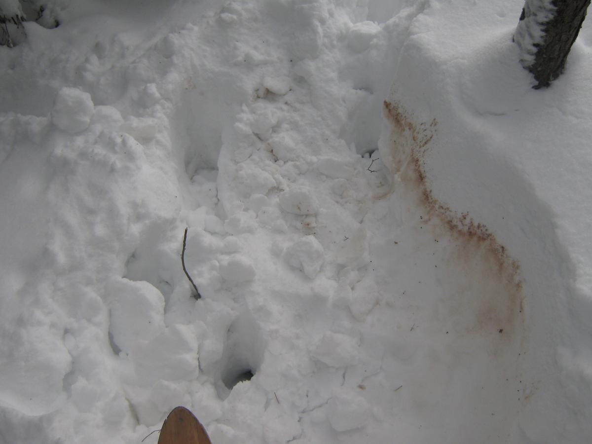 Осмотрел тушу. Пуля с нарезного (РМС 12,7) прошила грудинуна вылет. Зацепила только лёгкие без костей. Изо рта тоже кровь (может собака поработала) а выходное с коробокспичек. Не раскрылась? Пуля с гладкого (Гауланди) попала в заднею ляжку. Дошладо кости, но даже не деформировалась. Хоть заново заряжай.