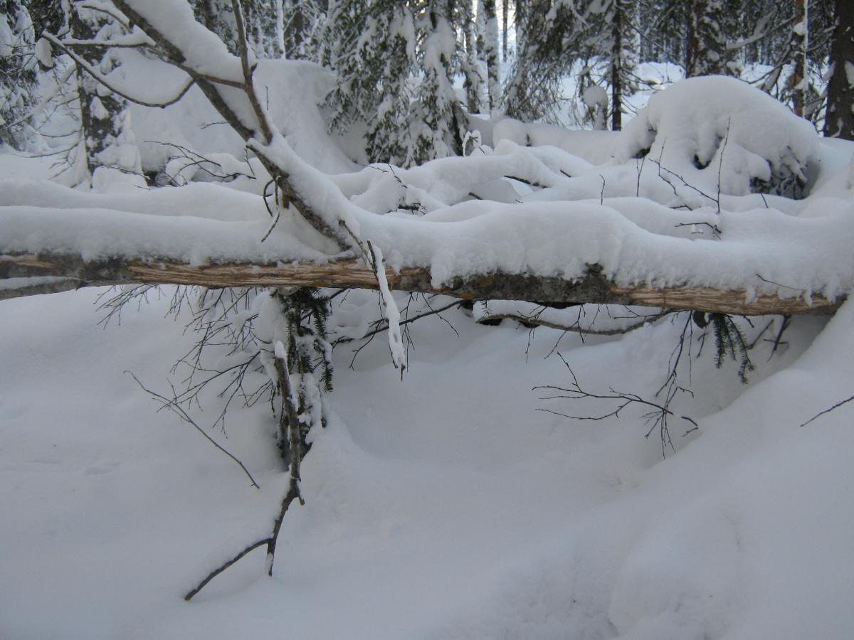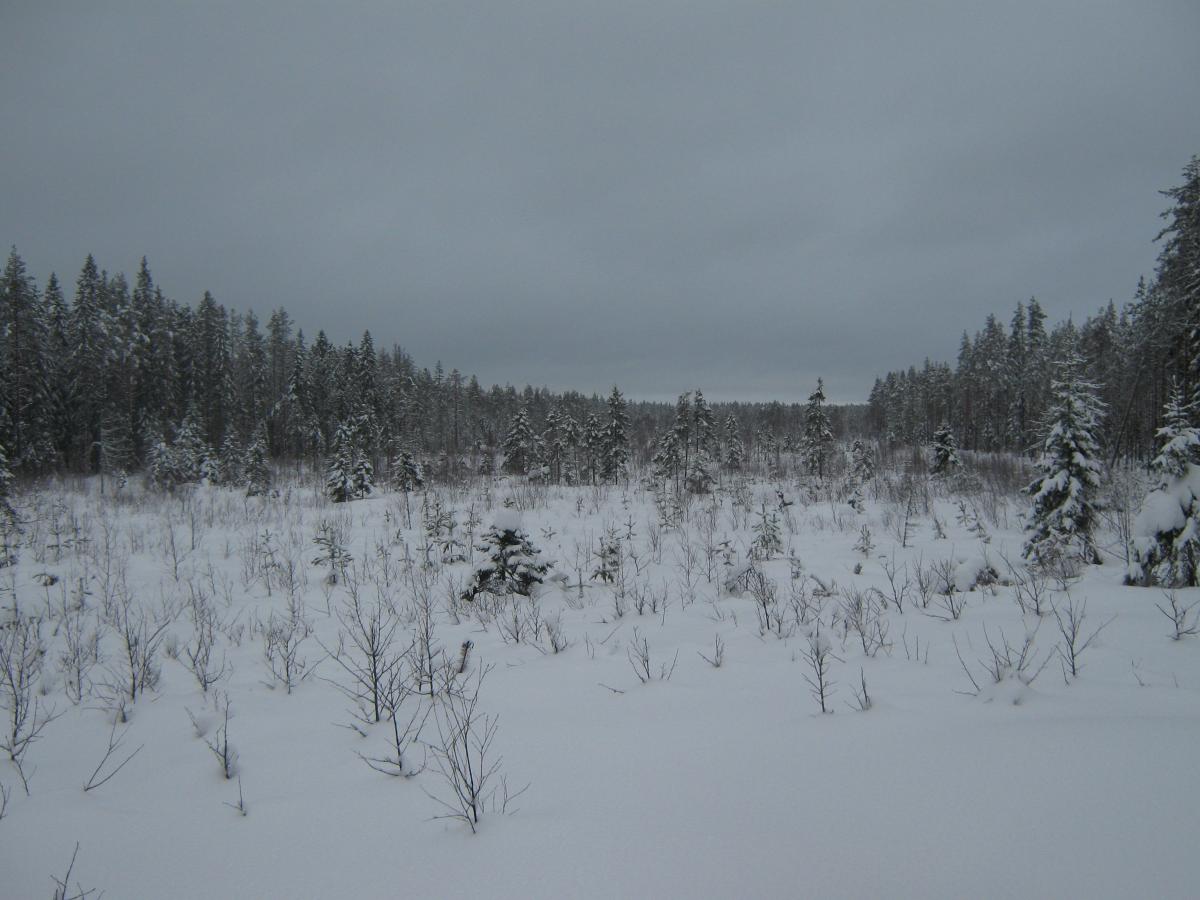 Хорошо, болото большое кругом, делянок много рядом.На них совсем мало снега - круги легче нарезать. Приметил на джопсе район, До вечера успел дать только один охватный круг, стемнело.