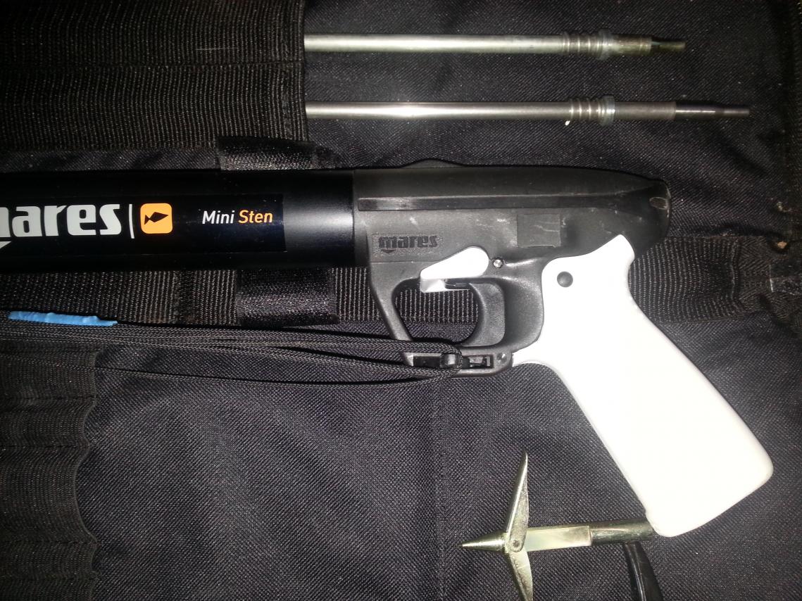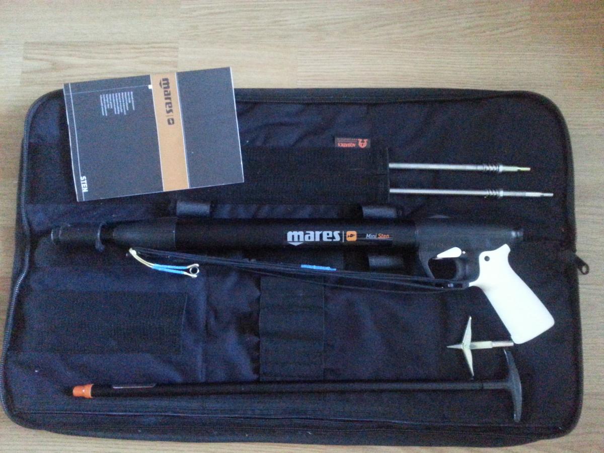 Mares mini sten 58 (без регулятора) с чехлом, линем, насосом, двумя гарпунами 1 стандарт и 1 нержавейка с паспортом и с 1 стандартным наконечником.