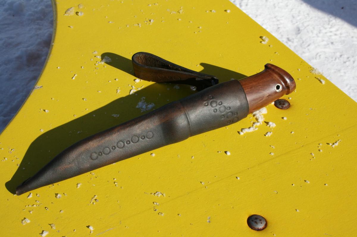 Ножны кожа КРС,тиснение ,свободныу подвес,фурнитура,кожа желатинирована,воск Киви.