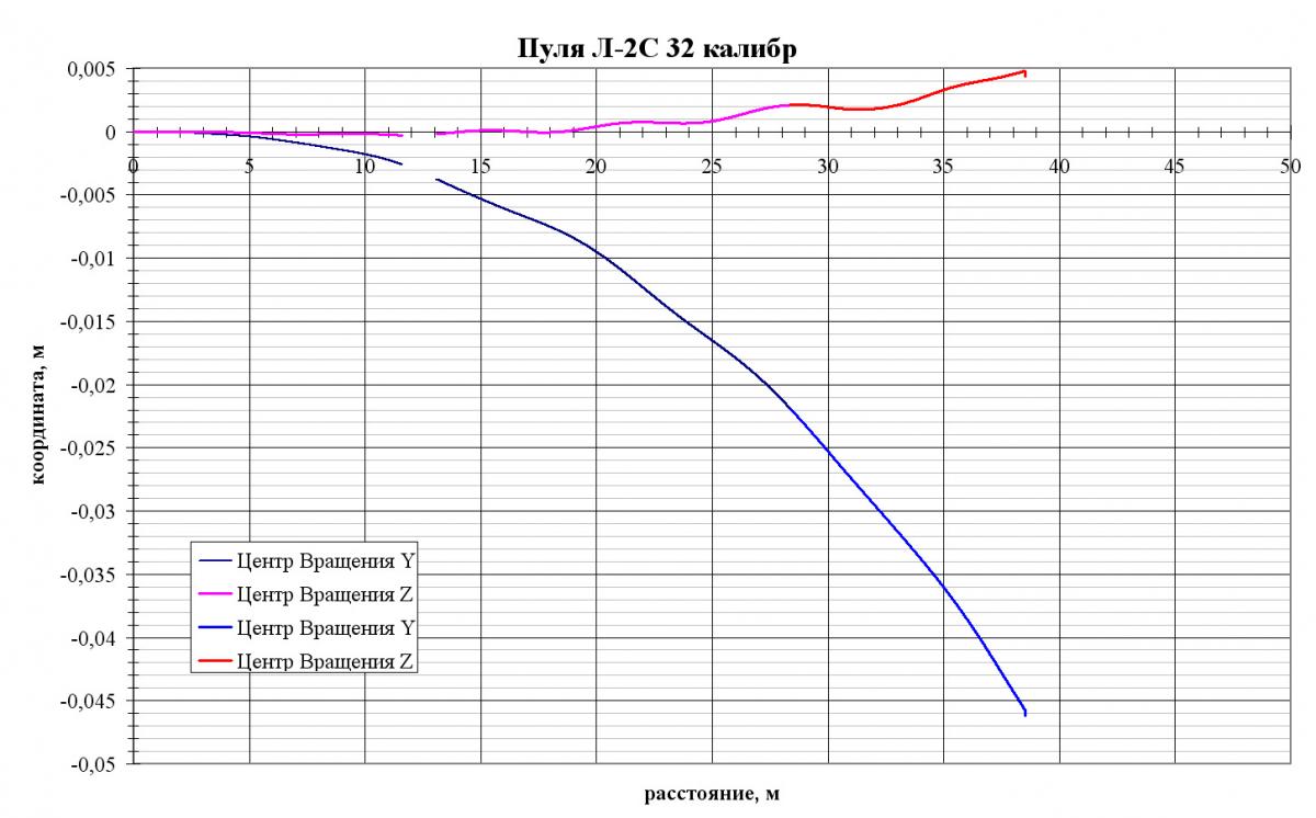У меня только одно приходит на ум - при таком коротком стволе порох не успевает сгореть полностью и достаточно разогнать пулю, и при переходе со сверхзвуковой скорости на дозвук (видимо в районе 80 метров) пулю начинает колбасить.