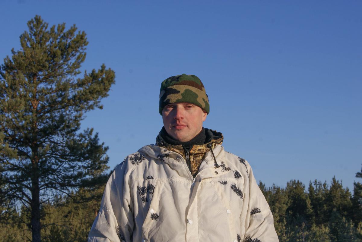 Температура воздуха около минус двенадцати. Одели масхалаты,сидим ,ждём в ёлочках. время пол седьмого.Меня одолевает Колотун Оке. Старые рукавички не греют