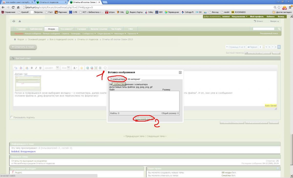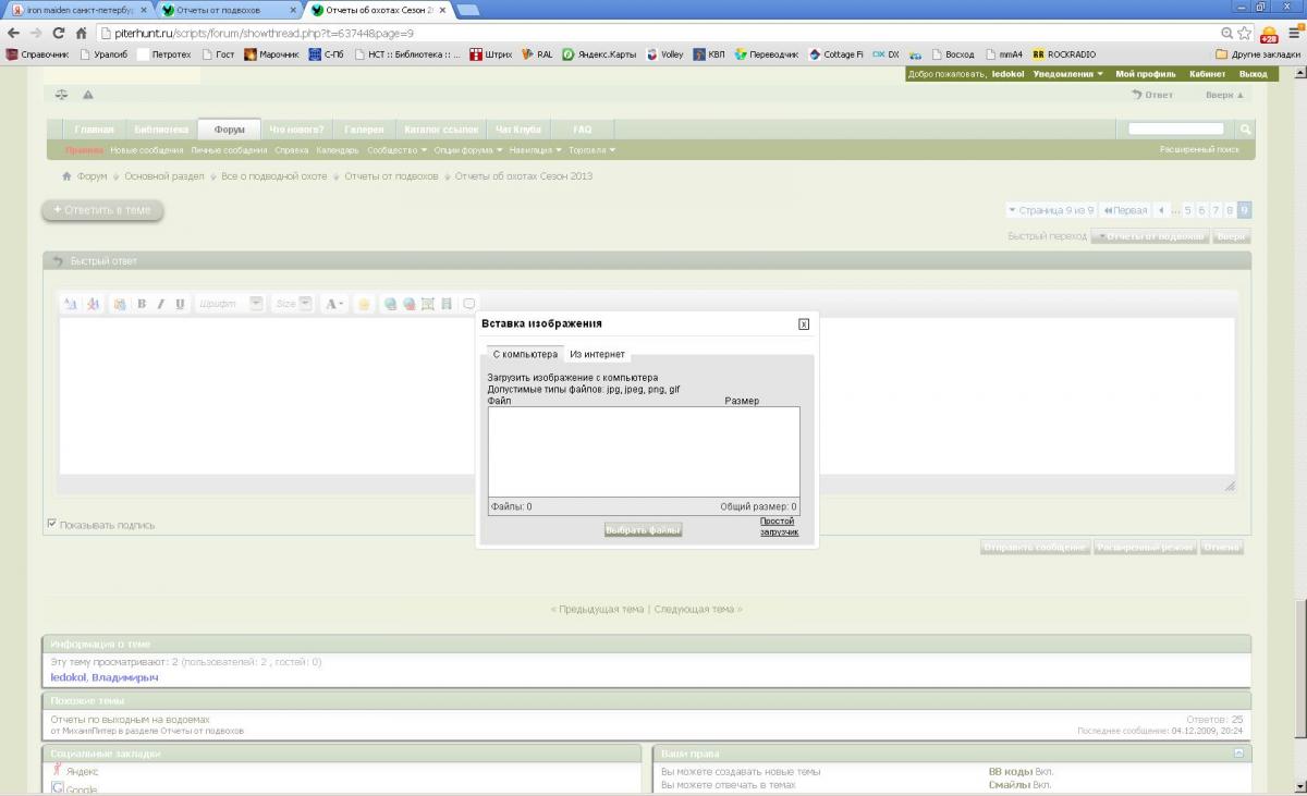 Всем спасибо! Вроде разобрался в чем проблема. Глючит мобильный интернет (а другого у меня нет), скорости нет вообще. Даже такой небольшой объем, как фотография, не может закачать! Такая же ситуация и на других сайтах! Как появится возможность, выложу фотографии с последней нырялки. Кстати, сегодня в ночь за судачком. Где-нибудь до часа посижу на доночку, на живца, а потом заныр. Илья, ты знаешь куда!