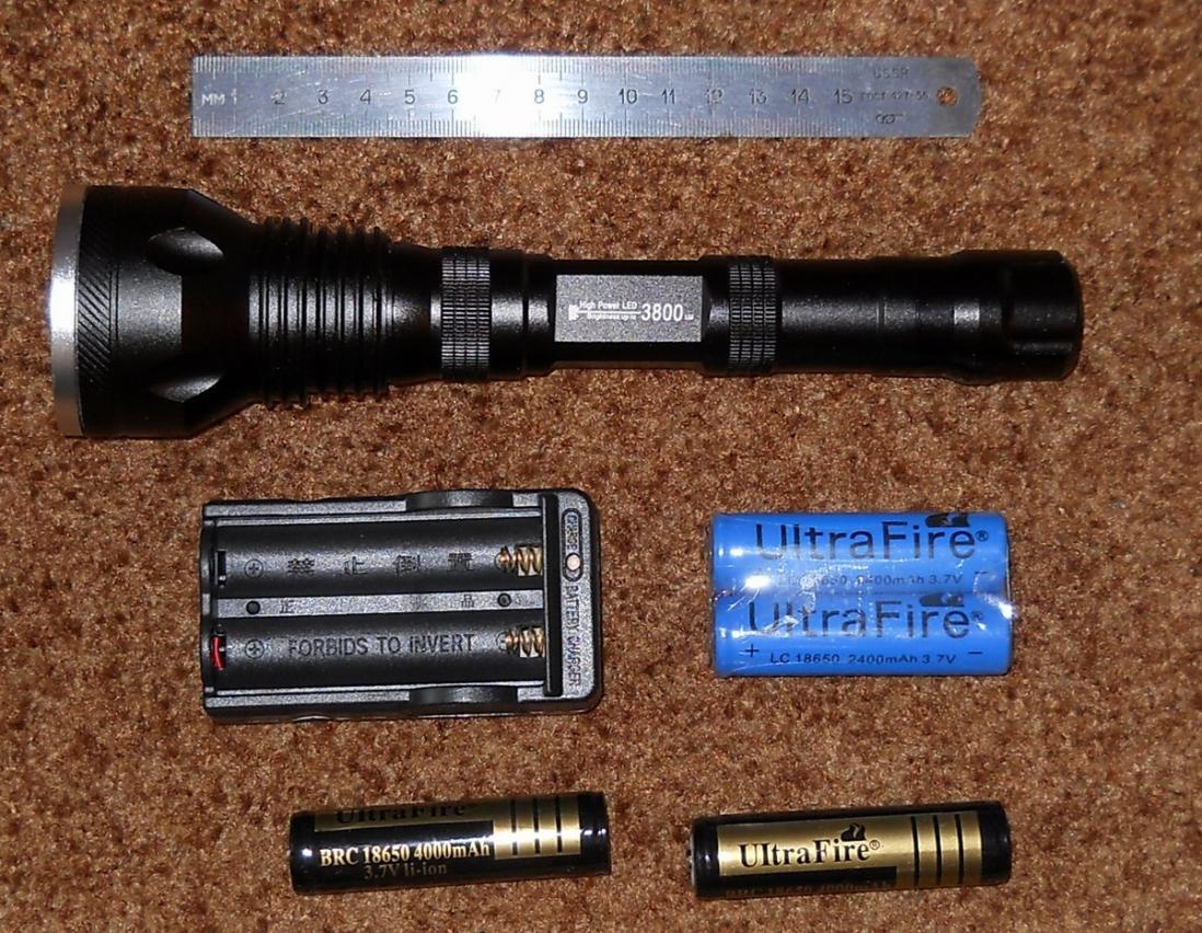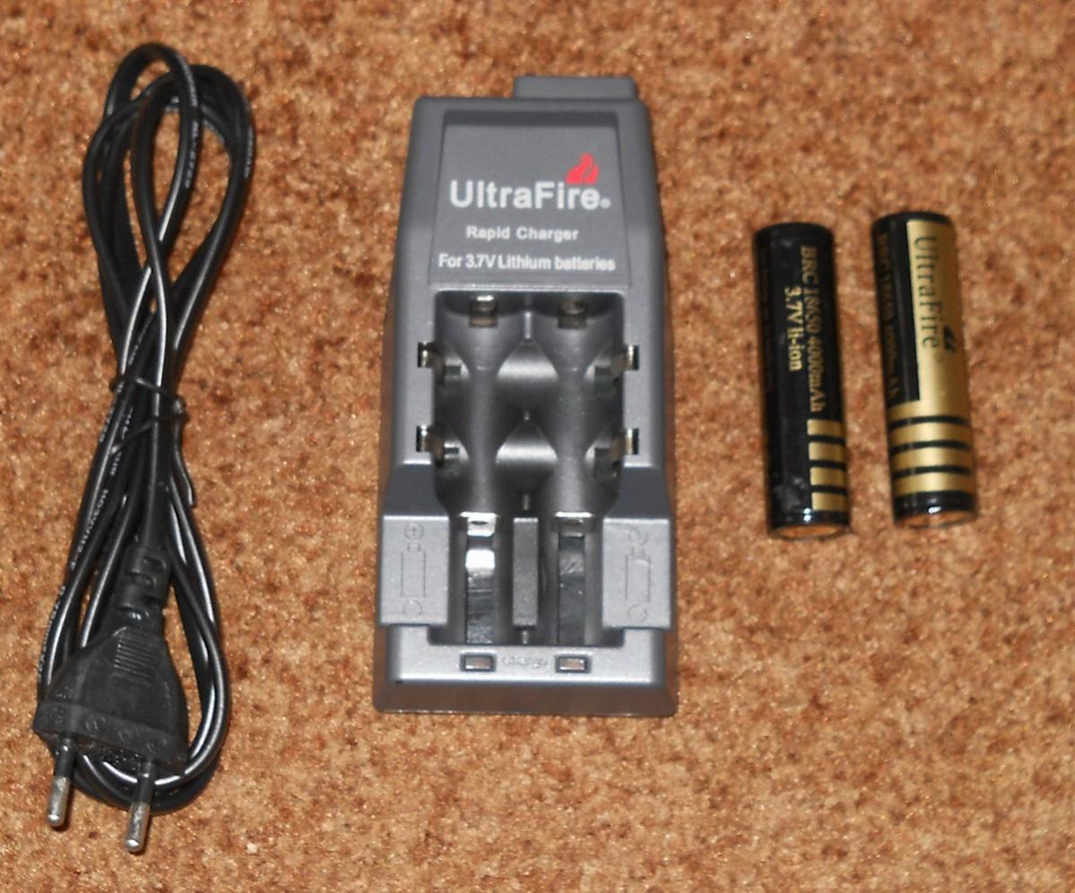 - Два запасных аккумулятора 18650 Ultrafire номинальной емкостью 4000 mAh