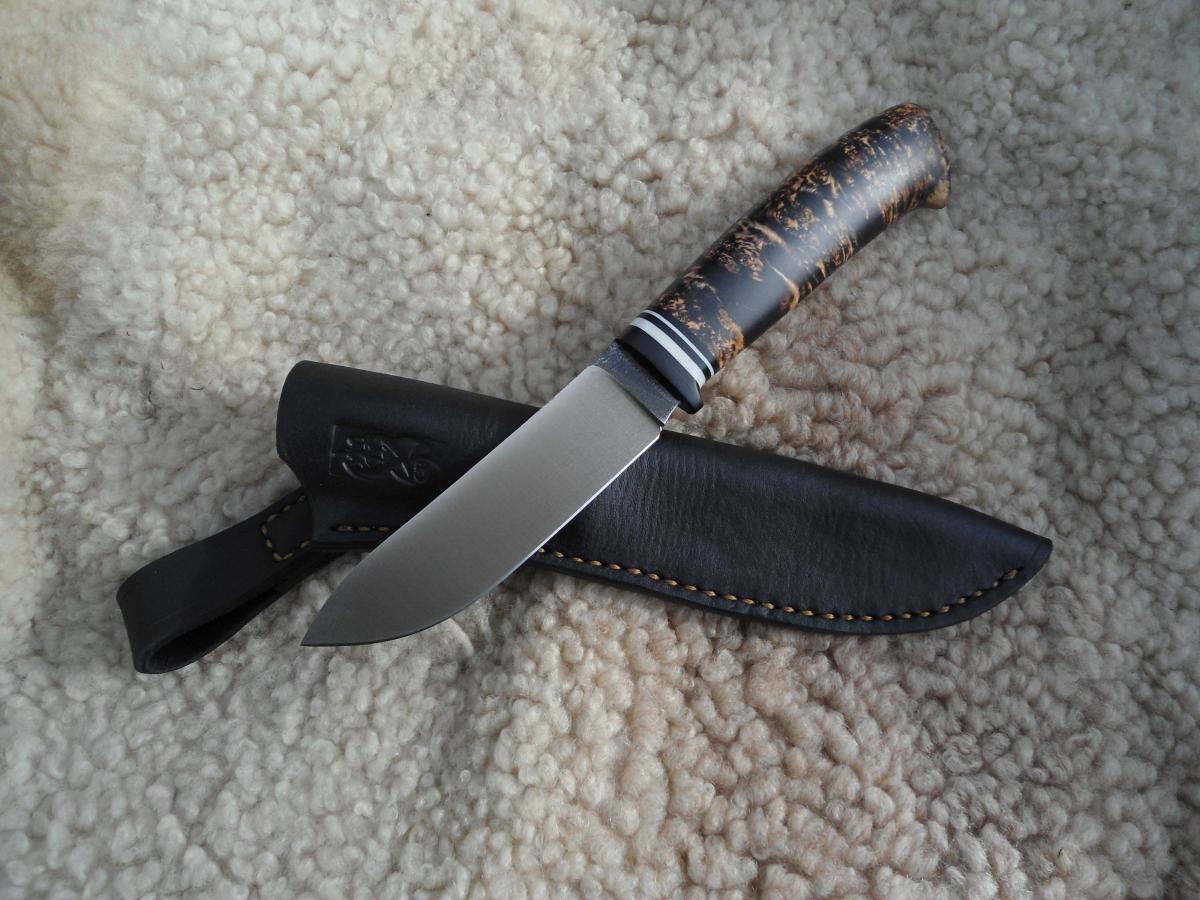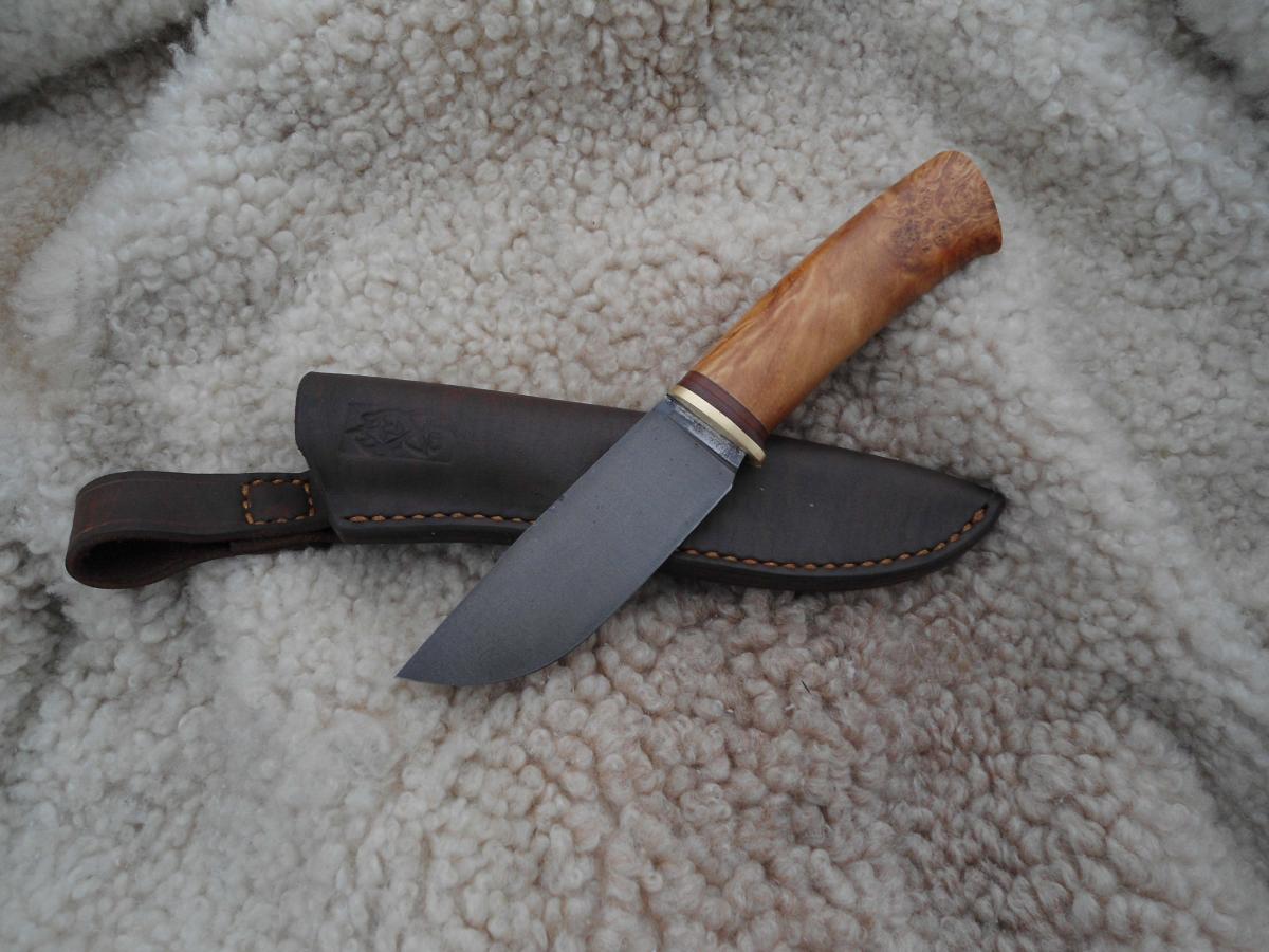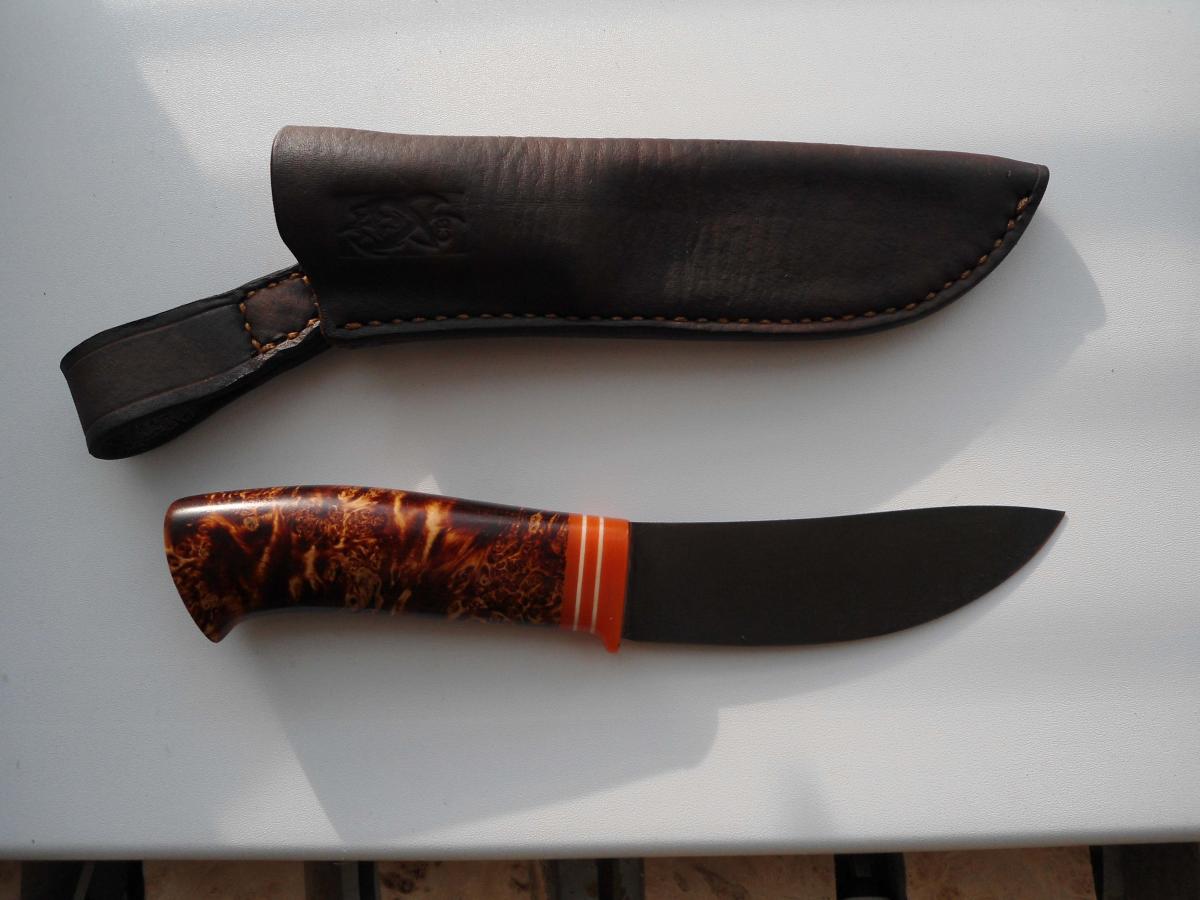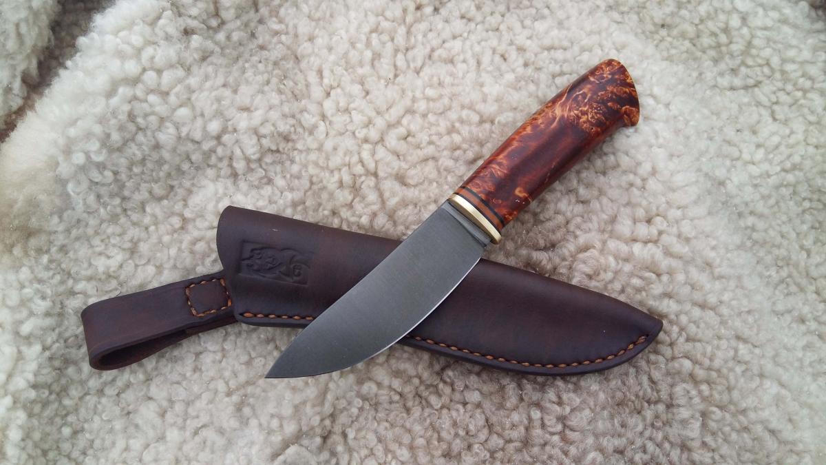 Больше года лежала бонусная полоска К110 от Анзара. Узкая,толстая все не мог придумать какой нож из нее сделать. Все же надумал)))Вот такой получился Клинок 129х21х4,4мм спуски прямые от обуха. Сведен 0,4-0,6мм,протравлен в ХЖ. Рукоять 122х23х17мм,Ж10,кап березы.Из поковки от Кузнец -Стрелец собрал вот такого. Клинок 103х32х3,5мм спуски от обуха сведен 0,2-0,3мм. Рукоять 113х28х16мм латунь ,кожа,кап березы.