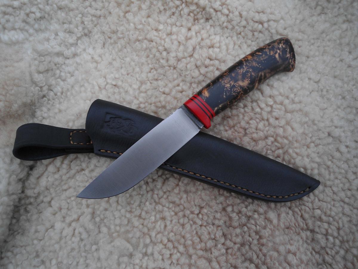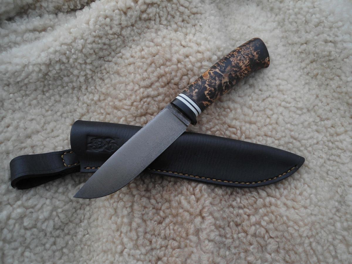 Попросил товарищ нож сделать для забоя живности домашней. Клин сталь К110 148х25х2,3мм. Рукоять ж10 и кап березы. Ножны кожа РД.