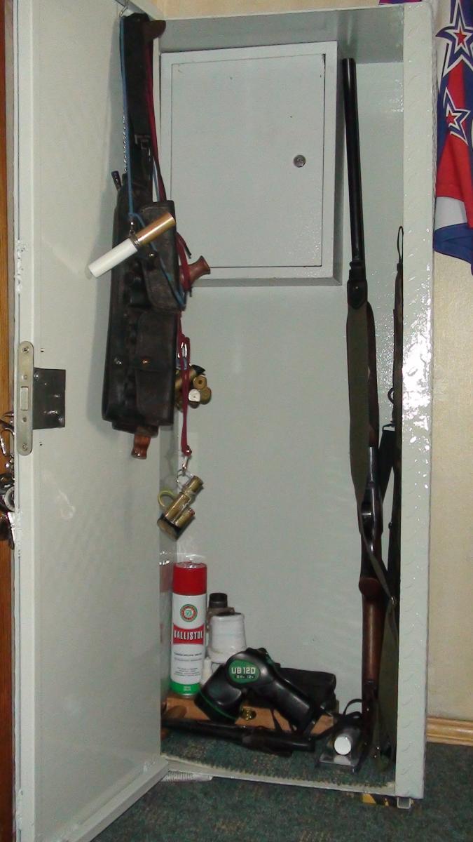 Для того и делал ящик внутри без основательных конструкций, т.е, чтобы была возможность сделать так, к чему прийду в процессе пользования, потому как опыт не богат.Патронный шкафчик и полочки под шмурдяк перевесить на дверь, а то 3/4 объёма для ружей пропадает.