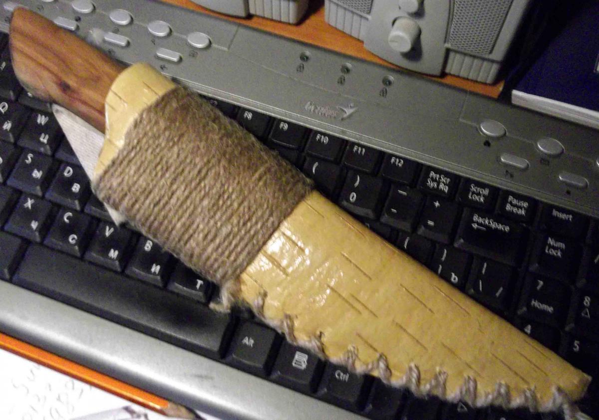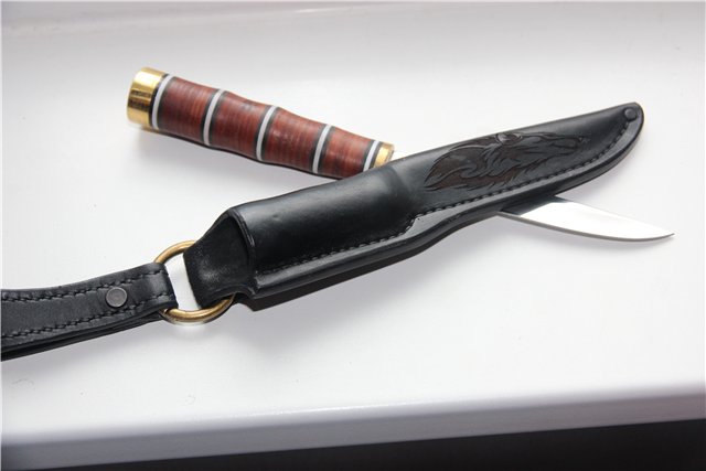 кедра вырезаю так, чтобы нож входил в них соприкасаясь по всей поверхности, без усилия. Затем со стороны обуха обе щёчки слегка подстрагиваю так, чтобы со вставленным ножом между ними был зазор 1-1,5 мм. После обшивания и высушивания кожа ножен «поджимает» этот зазор, и нож не выпадет. Если по неопытности получилось слишком туго, то завернуть ножны во влажную тряпочку и подержать в тепле до размягчения кожи, затем вставить между щечками 1-3 полоски фольги и нож. Высушить, убрать фольгу и все будет нормально!