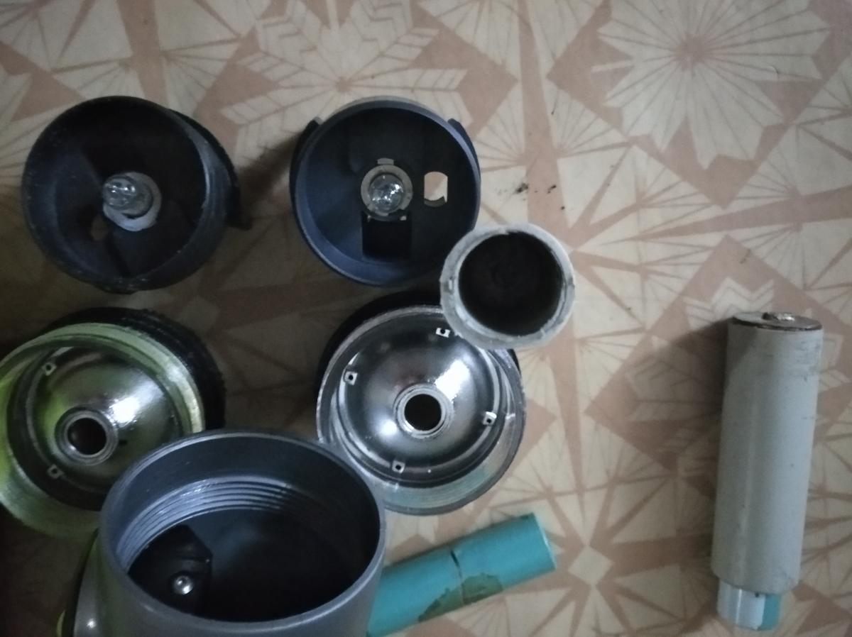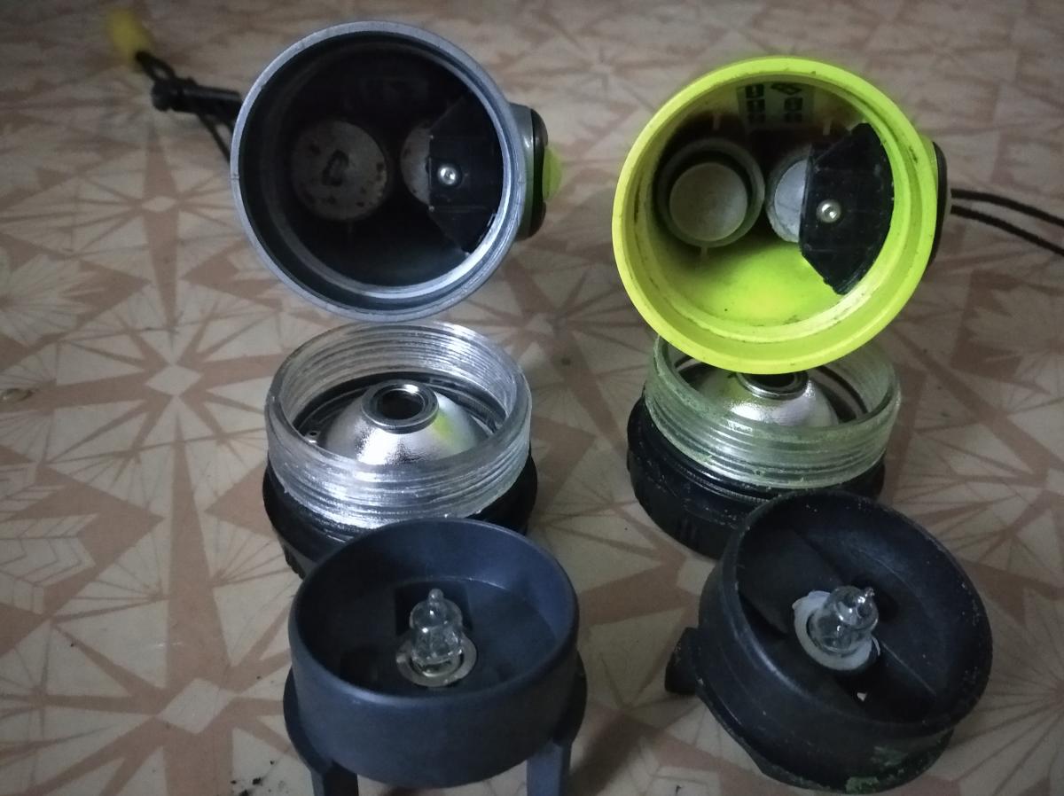 на последней фотографии заметны боковые проточки-выборки по бокам трубки-вкладыша, чтобы её можно было вставлять вовнутрь (иначе она не проходит через рёбра жёсткости фонаря, это проверено). Делал их только на одном "балластнике", так что перепутать их проблематично. По своему наполнению и размерам в остальном они идентичны.