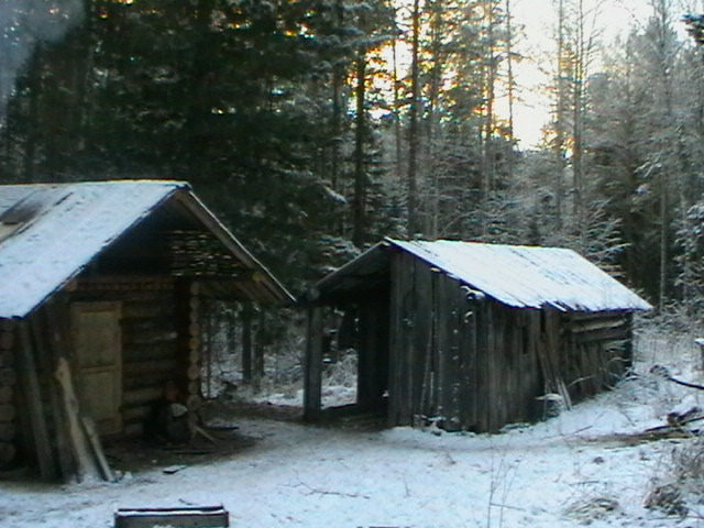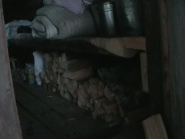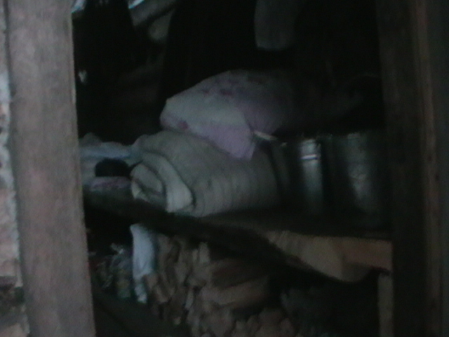 . За вёдрами 2 полутора спальных ватных матраса. А дальше спальное место свояка