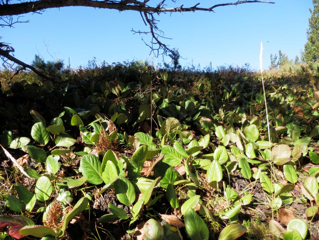 Листья размером с ладонь, + -, плотные, кожистые. Его не едят, старые, почерневшие листья можно использовать вместо чая, а корень можно использовать для выделки кож, или отваром лечить понос, сильно вяжет... Растёт в основном на скалистых местах.листья шибко крупные?и с чем его едят?