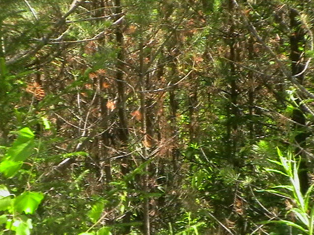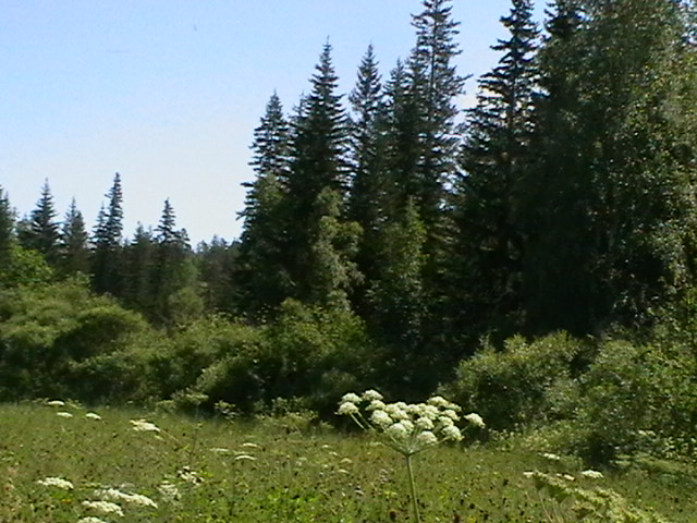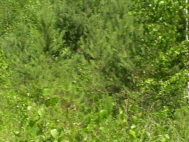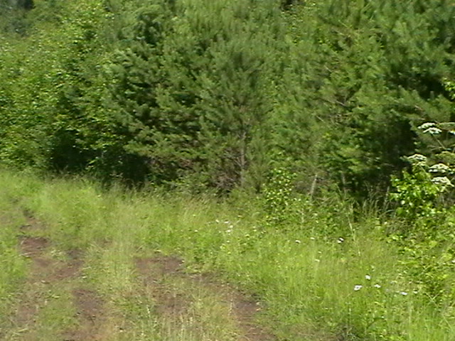 как видно из фото местами подрост такой плотный что с дороги дальше 2х-3х метров вообще ничего не видно.и если выкатится медведь то уже поставит перед фактом.