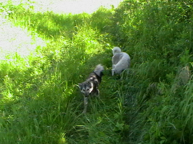 а это мы через часик пошлепали прогуляться с собачками до лугов:
