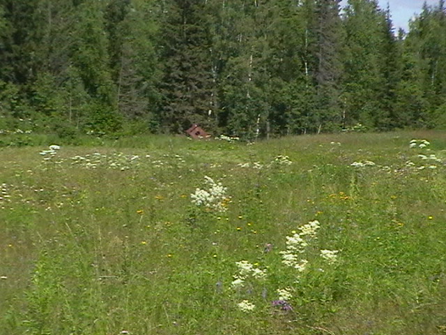 это вид на избушку на пасеке с лугов.