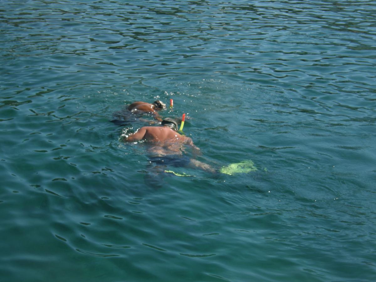 Ходили на катере на прогулку вдоль побережья острова. На стоянке капитан облачился в маску с трубкой и за 30-40 минут наловил полиэтиленовый пакет морских ежей. Потом угощал. Вкусные! Напоминают по вкусу уже завяленную рыбу, но мокрую.