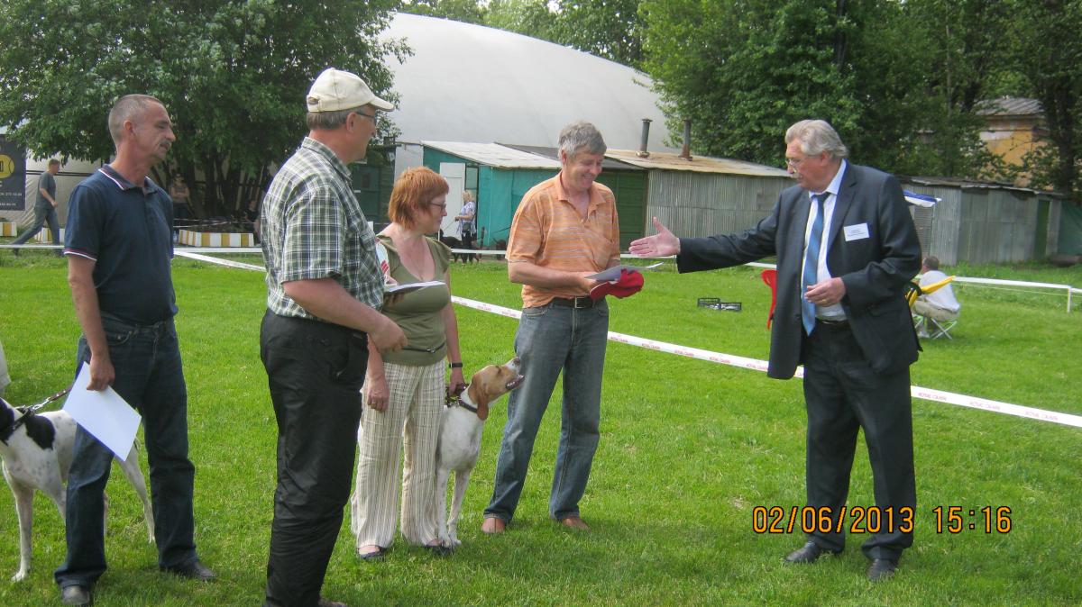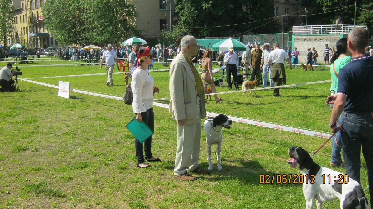 Был, видел. В начале о не очень хорошем и даже о плохом. Жара Т 30[SUP]0[/SUP]С, Стадион" Спорт -сервис". На нем проводится уже третья выставка подряд, место( на мой взгляд) не приспособлено и вот по чему 1 и самое главное отсутствует парковка, если и ставятся автомобили, так это примерно 10% от количества участников, 2- отсутствие каких либо навесов, от солнца и дождя,3 - туалеты на одно место, От жары изнывали все и люди и собаки. Все это наводит на размышление выбор этого стадиона - системная ошибка или банальный откат от стадиона- устроителям. Наверное можно и нужно задуматься участникам, членам МОО ЛООиР и выработать методы воздействия на Устроителей выставки, а именно на Главных людей ЛООиР, тех кто принимает решения.