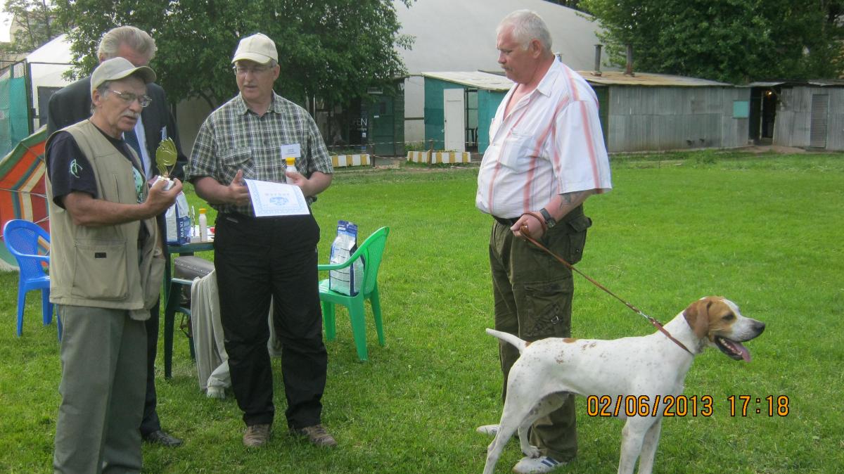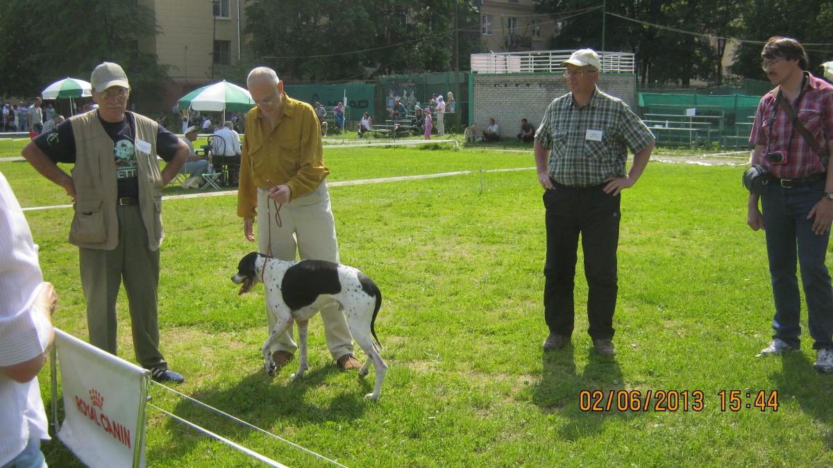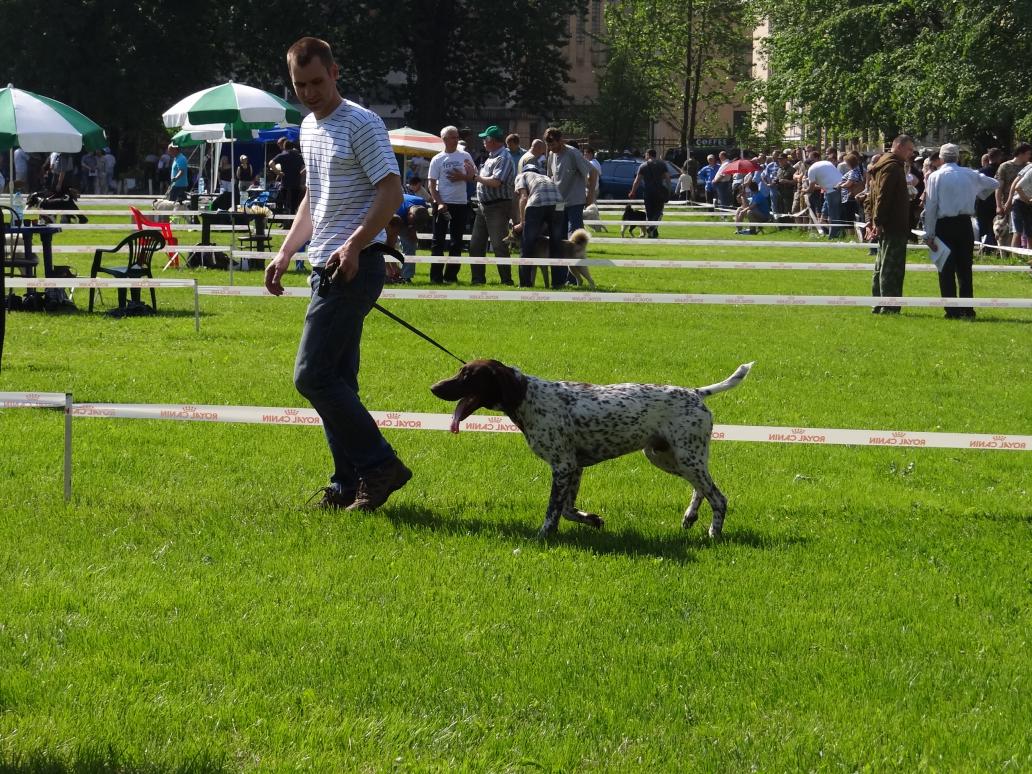 А теперь о хорошем. Обрадовало то, что как всегда многочисленно были представлены исконно русские породы охот собак - русская псовая борзая, РЕЛ, ЗСЛ, гончие. Хорош и многочисленный ринг РОСа, английские сеттры - много и хорошо. Самые дисциплинированные Курцхаары, идут в ножку с ведущим и лапу ставят, ну прям как штурмовики Рема. Очень, очень обрадовал ринг Пойнтера, первое в два раза больше чем в прошлом году, второе самые прекрасные собаки, кто против можно поспорить. Как всегда не обошлось и без антигероя, На ринг пришел выставляться г.Петров-Полярный со своим Байроном, возраст 9 лет и 8 месяцев. Предъявил экспертной комиссии не понятные ксерокопии на иностранном языке, без перевода, на требования комиссии представить требуемые документы на собаку, г. Петров -Полярный пошел заручаться поддержкой к г-у Шацилло Г.К и последний в приказном порядке заставил принять в ринг Петрова-Полярного и его Байрона. При проведении экспертизы у данного кобеля был выявлен возрастной порок, а именно неправильный прикус. Оценка в ринге "удовлетворительно" и после этого начались долгие, пустые и маразматические разговоры, что де комиссия не соответствует той степени подготовки, что бы оценить все возможного "чемпиона" от Москвы до самых до окраин. Правда подтверждающие документы, это ксерокопии, а кто пользуется орг.техникой знает, что можно сделать такое!!!!, в результате был вызван главный эксперт выставки, который подтвердил выводы экспертов в ринге. Надо отдать должное экспертам Филиппову И.А., Садовскому Ю.Б., Гроссману С.Ю и Самойленкову Станиславу за твердость духа и понимания своей роли в племенной работе. Респект и уважуха. Фотоотчет завтра..