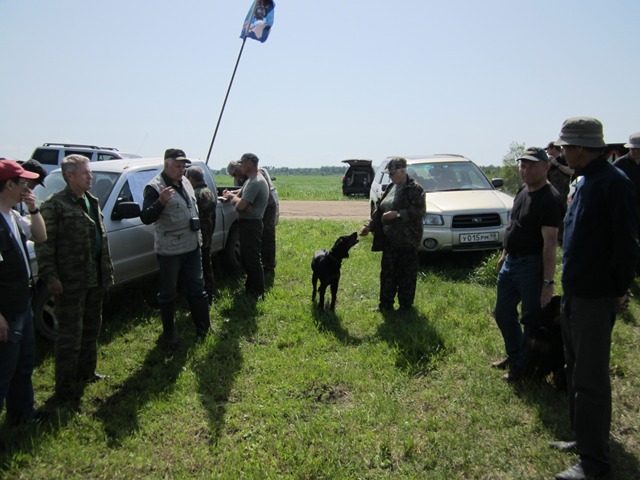 С погодой нам повезло, начали с небольшим опозданием, в 8.30, но как раз подул ровный ветерок в 2-3м/с,что при температуре +18 и влажности в 75% предоставляло собакам возможность показать себя в полной красе