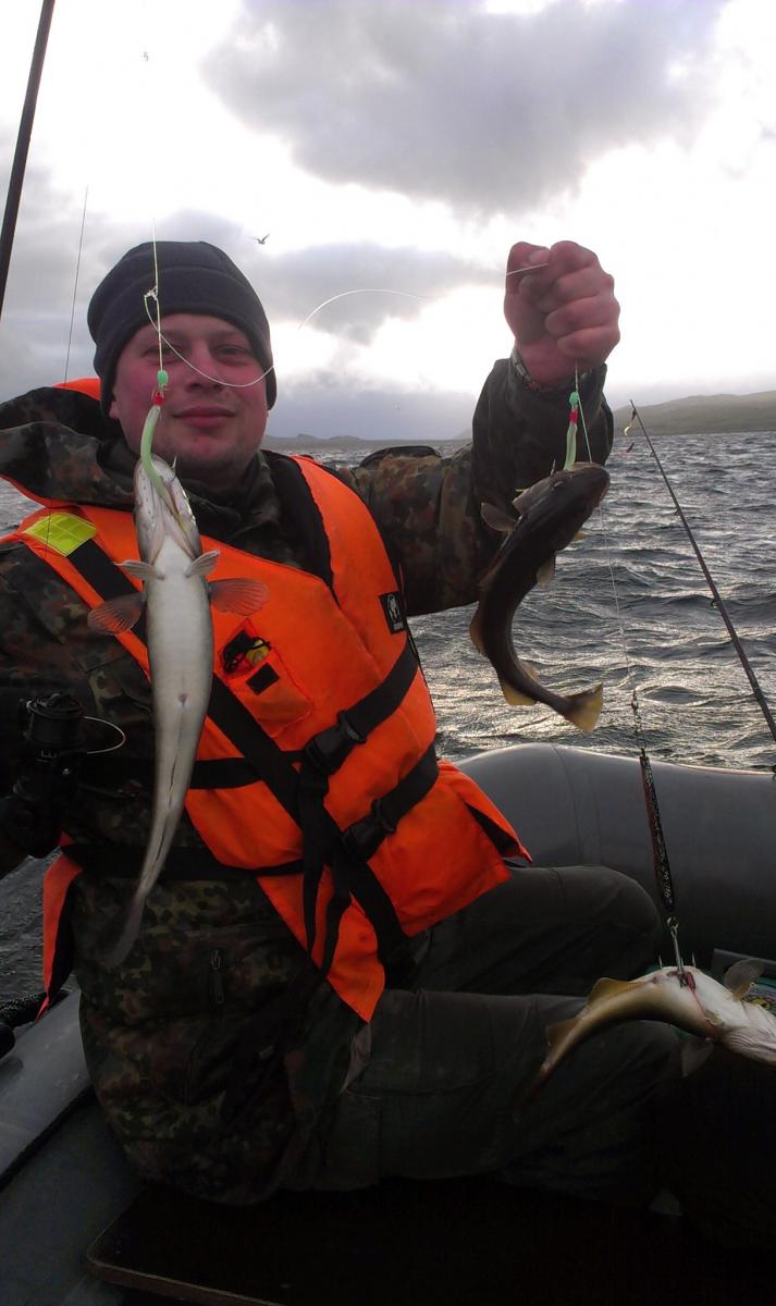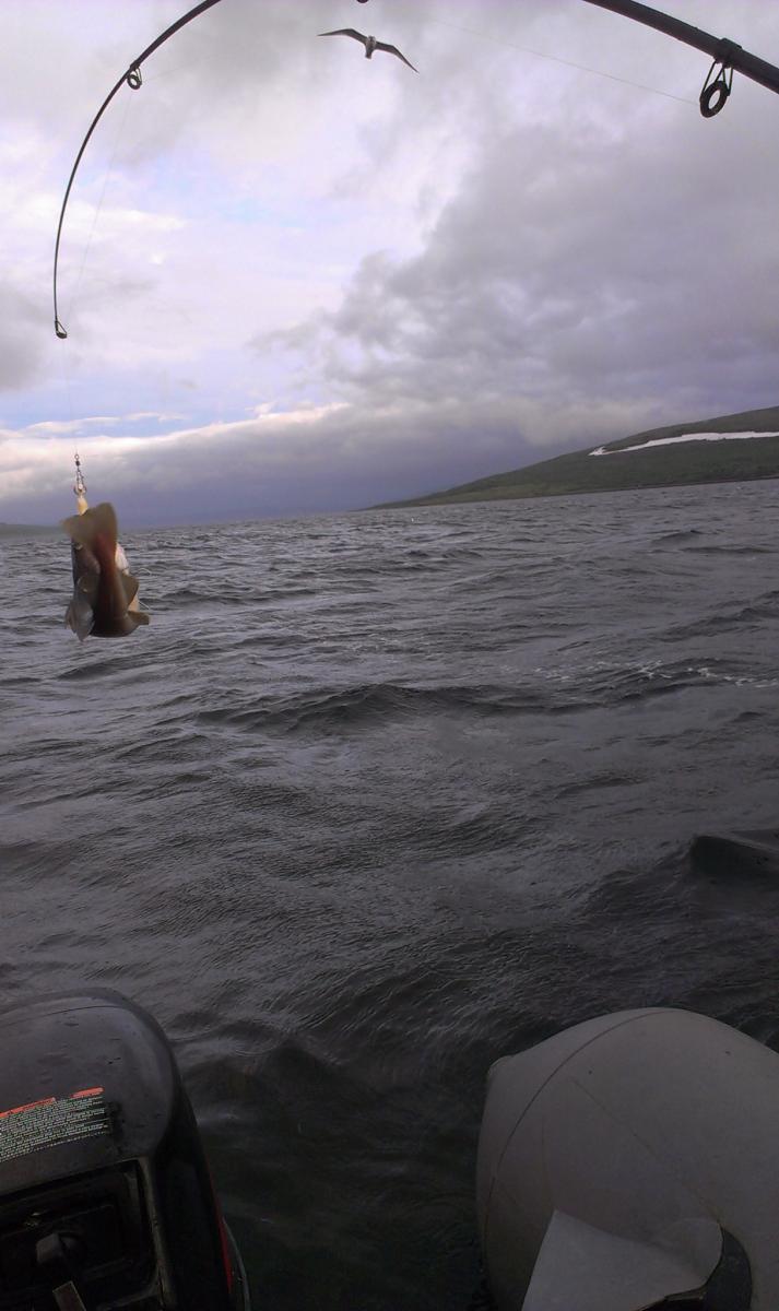 Ловили мы не в море а в губе, Вячеслав сказал, Что в море на 60-90 метров клевали бы рыбины под 4-5 кг. Но времени было мало, поэтому не парились и рыбачили там ,где успевали.