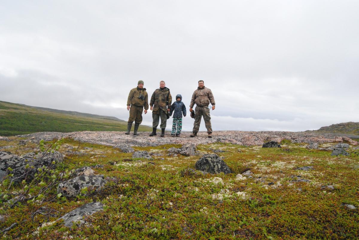 Наша рыбацко-охотницкая банда по пути на полуостров Рыбачий )) Сын сидит в машине, ибо на Белом море было +30, а на хребте Муста-Тунтуури - около +5. Не заценил перепады мальчишка))